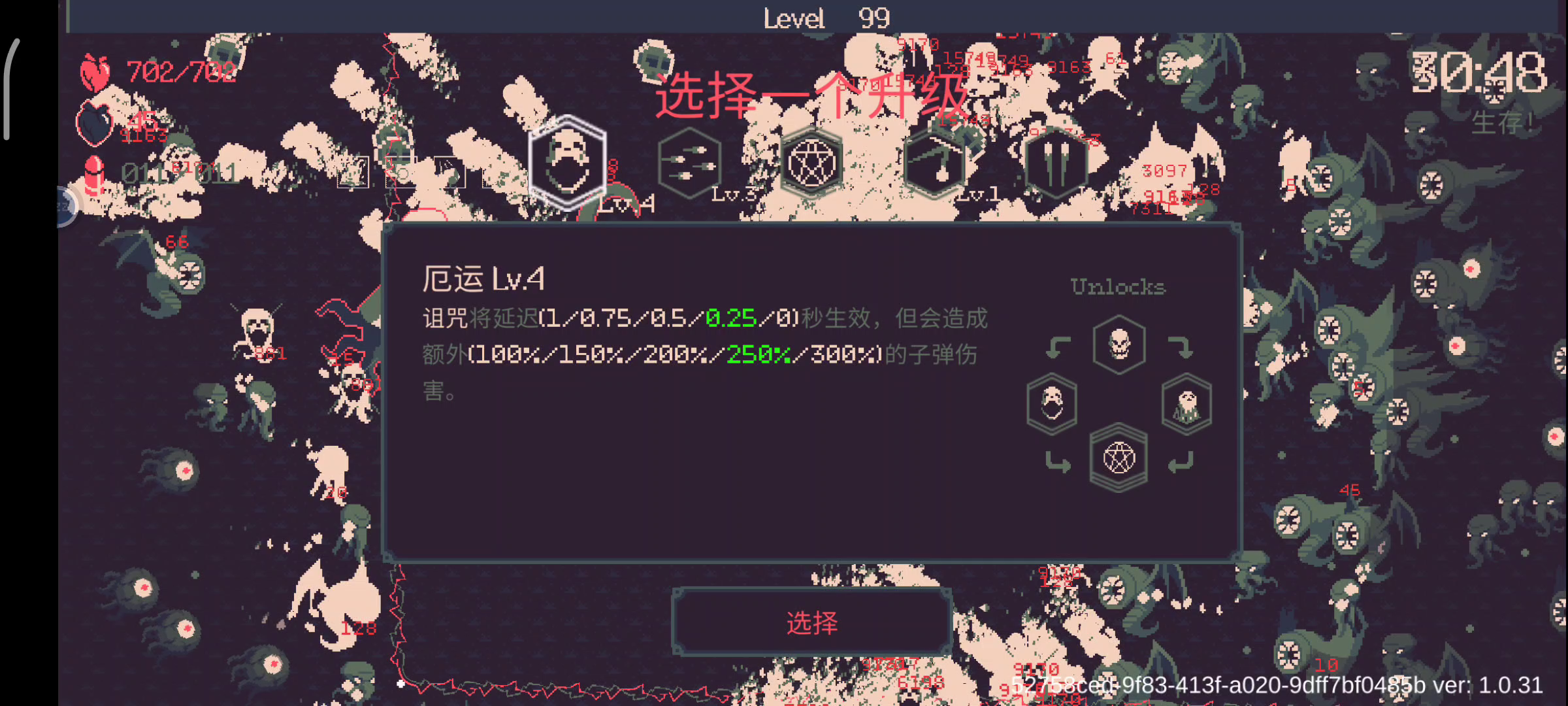 打了快一个小时,打子弹流太卡了,慢慢换新的天赋,后面靠死亡爆炸弹射,在不卡的情况下,玩了一会儿。