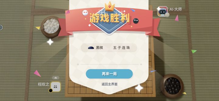 感觉和电脑下反而是白旗好赢一些,AI的进攻不是很猛,还有就是AI不会抓你禁手,长连的那个成就搞了好久