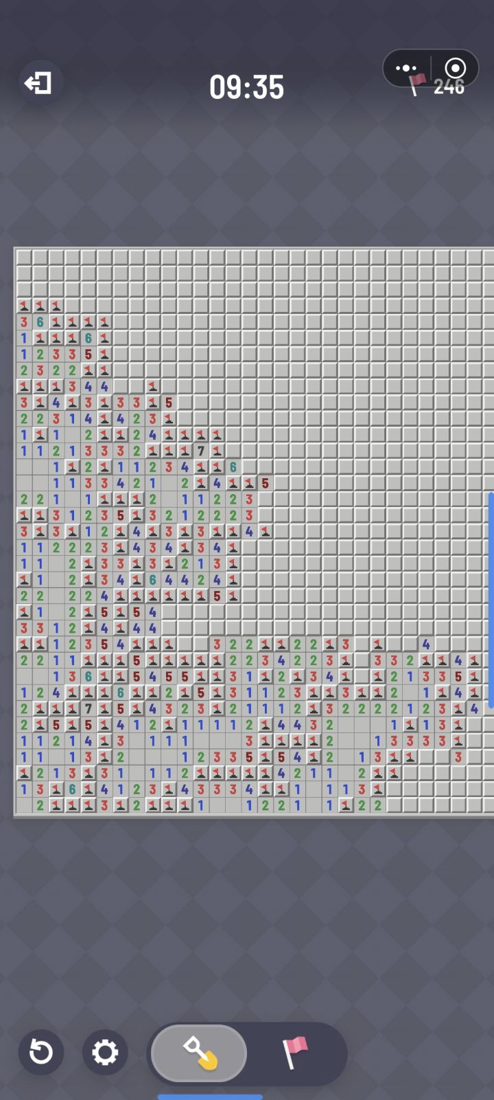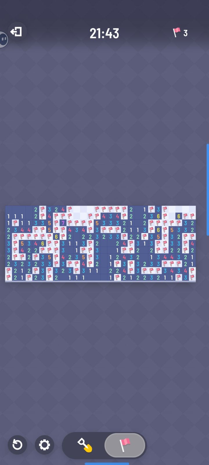 思路(图二):看332左边的3,下方橙线1雷,根据紫框左边的4推导出紫框1或2雷,所以蓝框0或1雷看中间的3,根据下方的1,推导出绿框2或3雷蓝框和绿框共同约束下只能是蓝框1雷,绿框右边是雷;根据绿框合计2雷,可以推导出下方的1左右其一是雷,1右下角绿圈安全;蓝框1雷可以确定紫框1雷,再根据左边4推导4的右上角是雷。虽然逻辑不算复杂,但是在无猜扫雷里面应该是比较少见的(不清楚这游戏保证