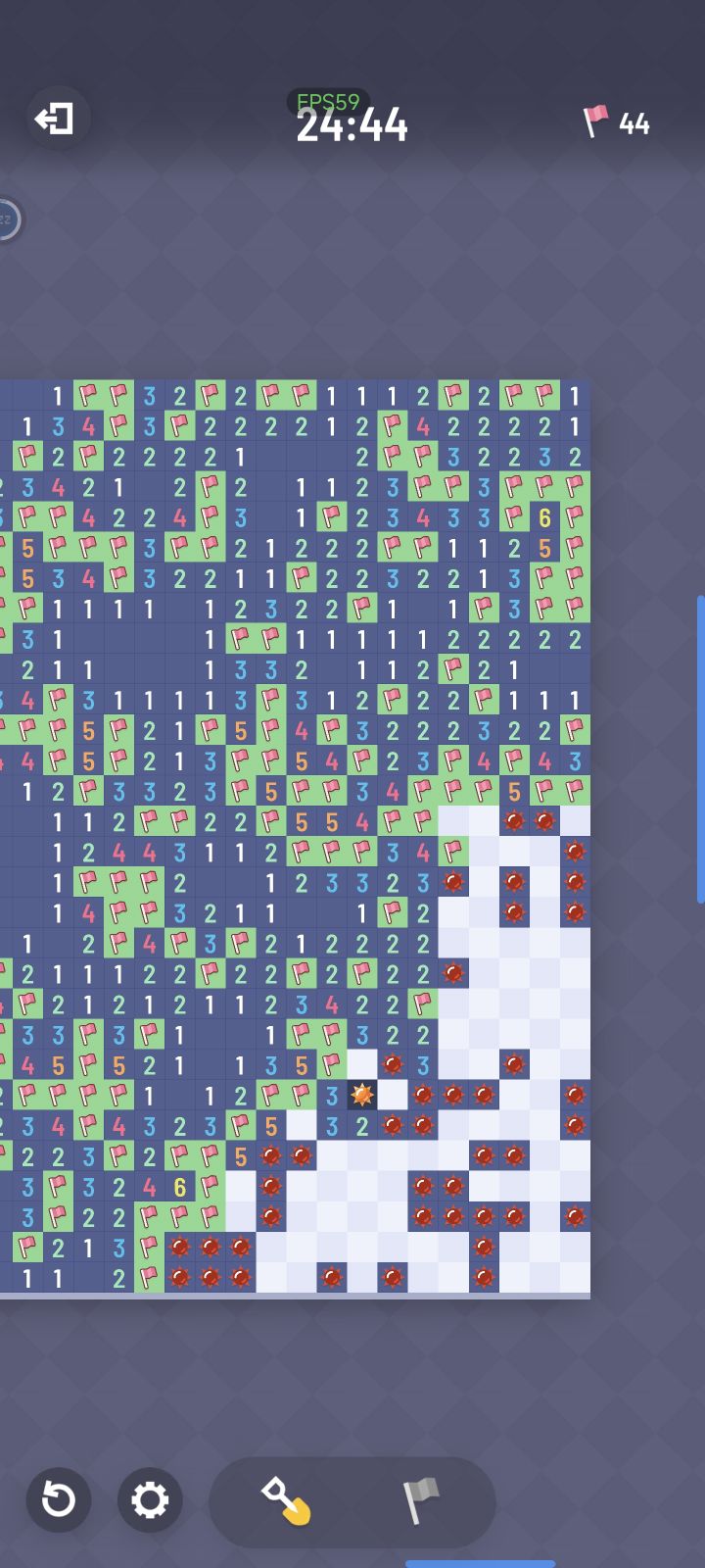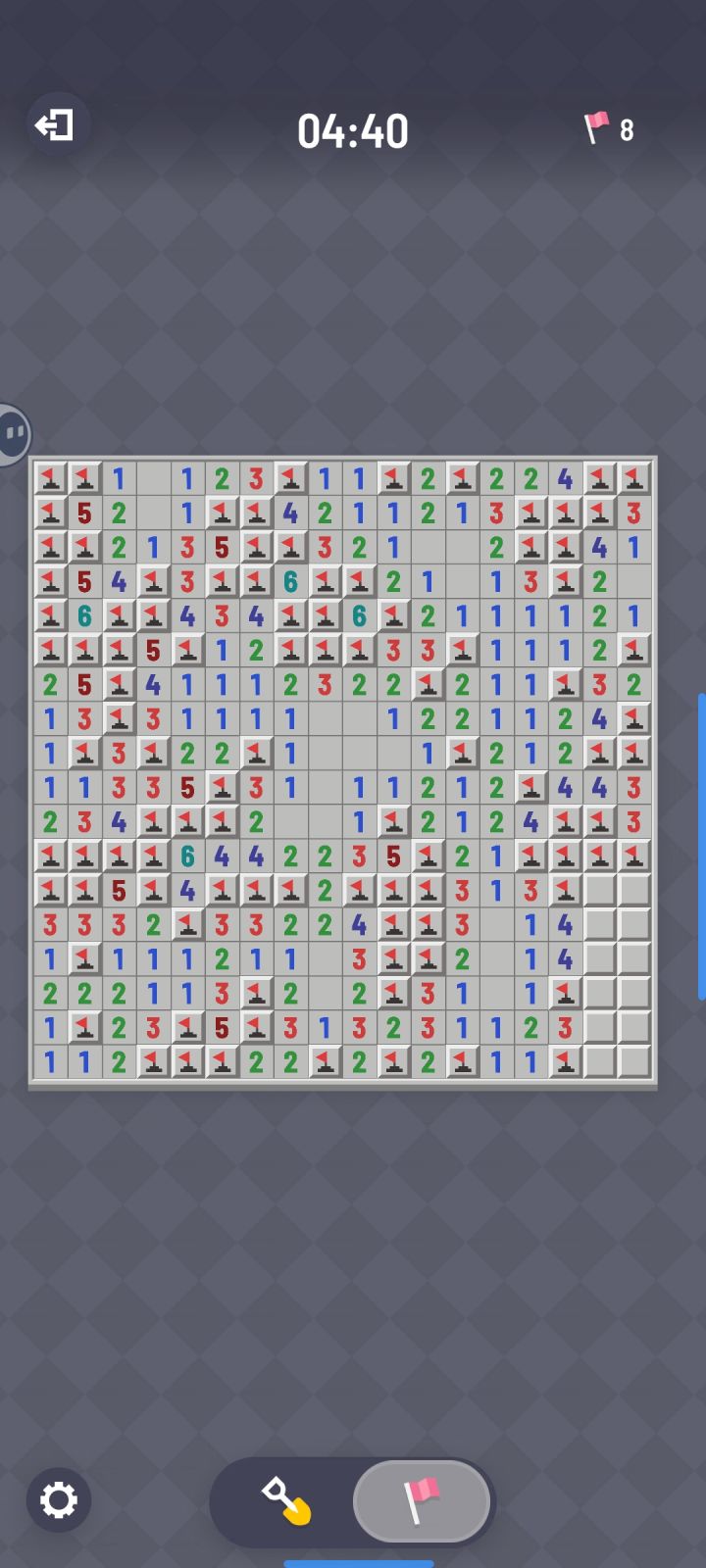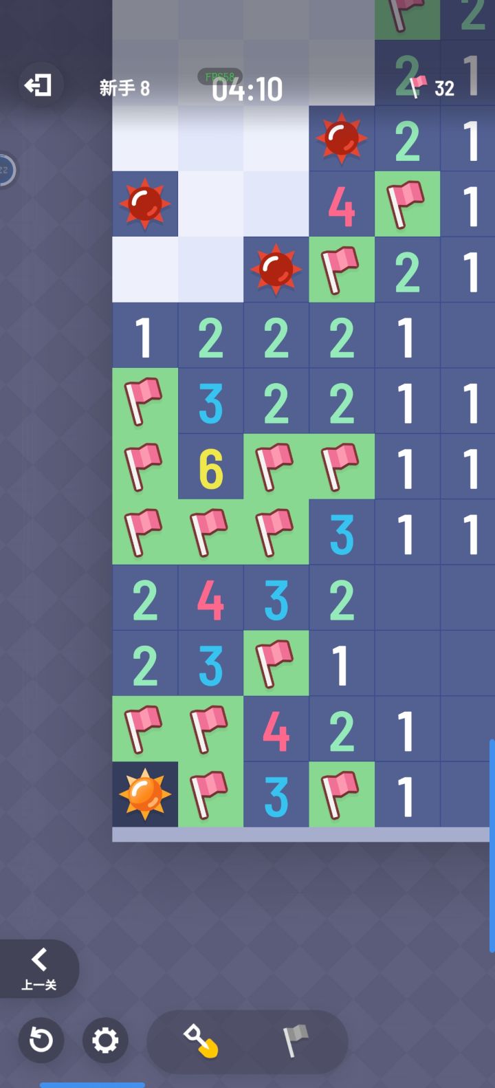 那个旗子和点开要切换,我好几次死都是因为它那个卡了,体验很差。我安旗子,但是它没有切换过来,就给我炸死了。还有些时候我是要点开,给我安个旗子。我都扫了一半多了,好几局都是这么死了