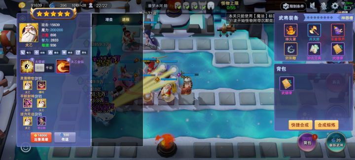 阵容:6星太二,6星雷子,7星三胎,5星妲己,6星司马懿其他挂件:唐三,唐三他老婆,道友别走,刘禅装备核心:阴阳鞭(控兵神奇)给太二,寒冰符给哪吒前期:唐三和他老婆加妲己基本能平稳度过,30波前人口刷新升满,人口上13,然后刷橙将,刷出司马懿和太二最好,其他的无所吊谓,建议重开。后面就看脸刷新了