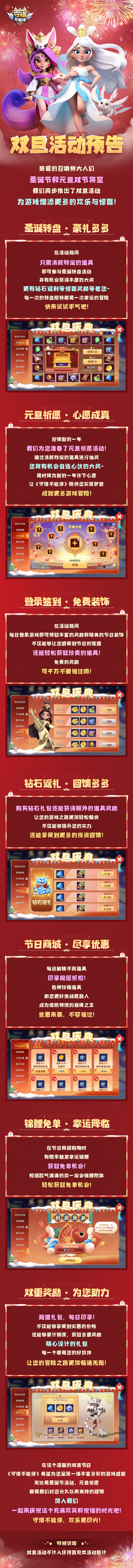 亲爱的各位召唤师大人游戏于12月20日进行在线更新。为了避免出现无法组队的情况,请您尽早重启游戏进行更新。更新内容如下: 预载了圣诞节及元旦节活动游戏资源。 注:本次更新内容较大,请在WiFi环境下进行更新操作。【双旦节日活动】活动时间: 2023年12月21日12:00——2024年01月04日23:59活动范围: 等级5级及以上的玩家。活动服务器: 所有服务器。活动内