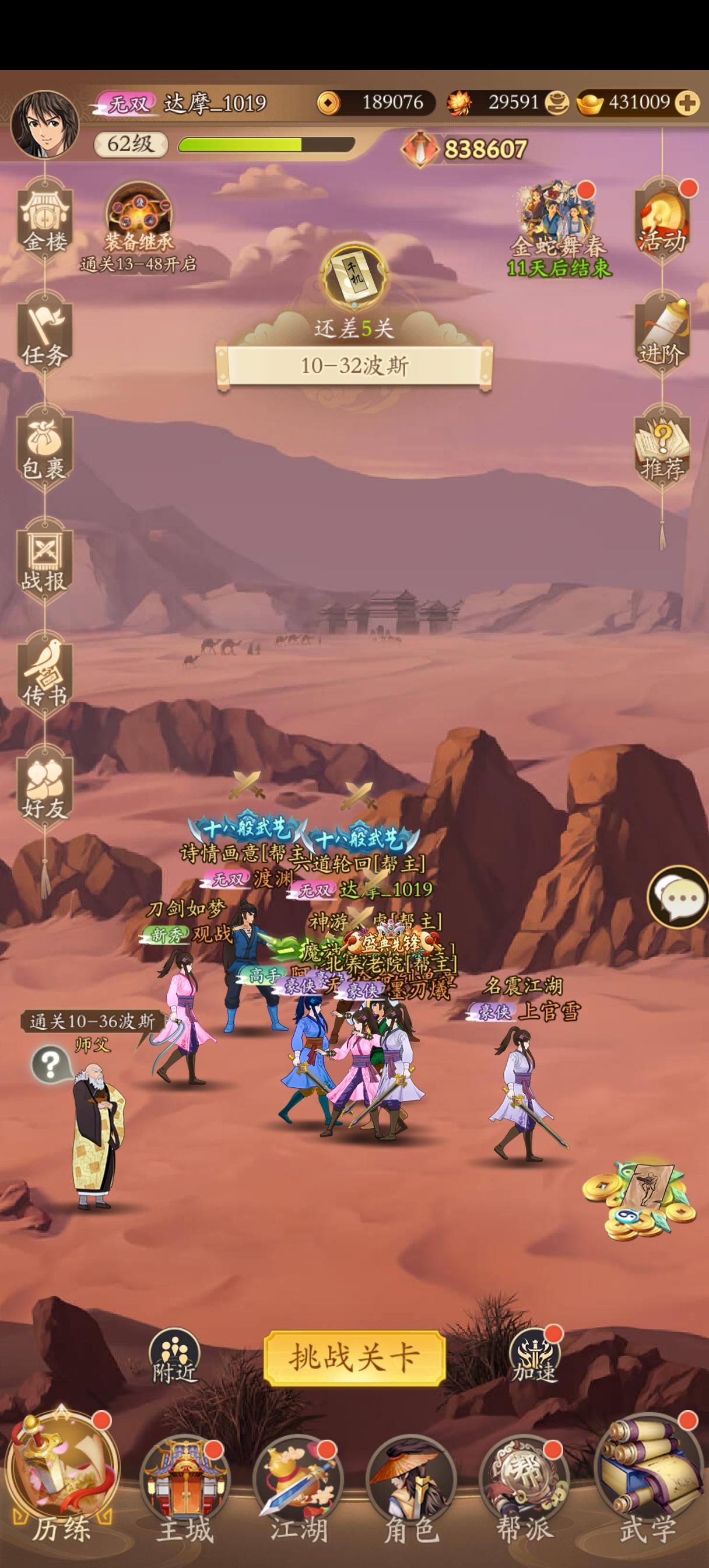 首先我们调和剑起手到了锦衣卫就可以拉出招式刀了,新区轻功拉魅影,爬塔也好爬。没有引狼时候就用单刀赴会,出了引狼再换到了丐帮的时候,需要两本飞龙更新配招,还要俩本逍遥心法峨眉赌狗套如下,可以提升上限,但是牺牲稳定性,也可以就上面的套路接着玩现阶段魔刀门,合了八跨,阳奇横行,大佬纵横,我在挨打中,于是开始变阵,追求恢复续航了