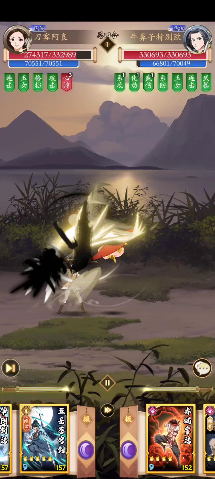 原来那套的修改实例,目标是对阵纯正剑(略高战,绝对先手,武学跨一个突破等级)时尽可能提高胜率,因为同战没有打得过我的,主要目标是维持自身战力段胜率的前提下,兼顾60级以内的越战,非阴拳阴奇,60级内华山都可以追到5到19倍 后续内容有兴趣自己配招微调的可以仔细看一下 简单说就是考虑到对方双出手,自身后手如果幻剑封一轮出手就能取得很大优势,对阵中除了双方几率拉条触发最极端的情况,基本是我方2位后对方