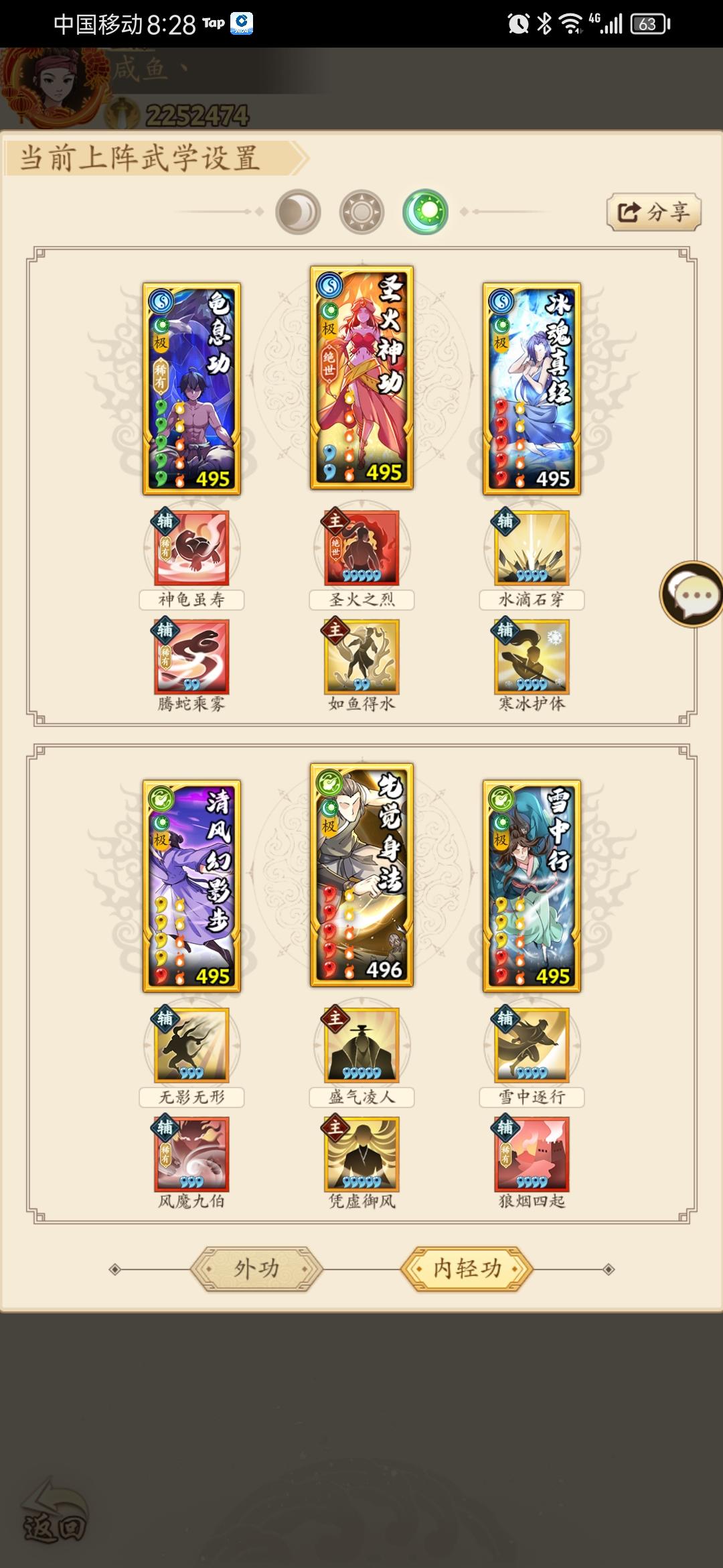 新的招式白牛解决了对面没有出手的问题,无疑是增强,还有减伤15四系减伤,无疑对阴奇是增强再说一嘴,本人玩阴拳的,只是喜欢研究阵容就搭配了一下阴奇,希望阴奇大佬们见谅这套不同于传统阴奇,算是拉条比较多吧,后手不是很多还是怕欻,所以后手分开很重要。青天玩阴奇肯定是必带的,青天后手招式的减伤还是比较可观的沙鹰盲目加心惊九尾后手点穴加招式暴击曼陀赤蝎上毒落雁灵蛇收尾内轻功是传统金钟石破套,