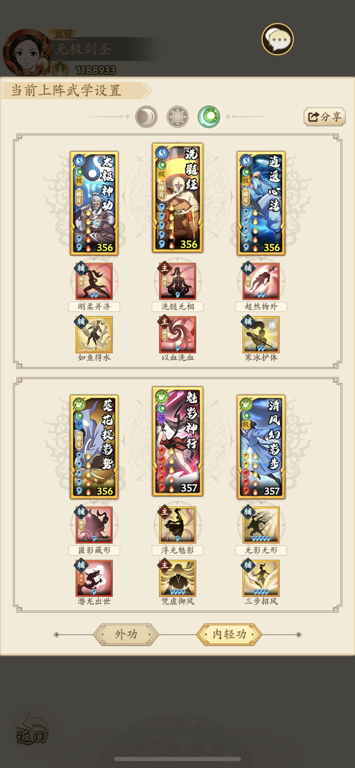 我是秋白,需要看更多攻略配招或查询配招可点击进入我个人主页慢慢翻找,也可+我VX:qiubai1177 进入拳修交流群取经. 接:拳号的调号配招爬塔新区氪金规划可+VX:qiubai1177思路如下:因为气海阳中 加上养成难度较大 后期战力会亏损一些,所以放入沙鹰来替换气海,其次新的阳极内功童心真经比较契合阳毒的回复和续航而且容易养成所以加入辅运替换逍遥,其中两版都是辅运圣火,如养成难度认为还