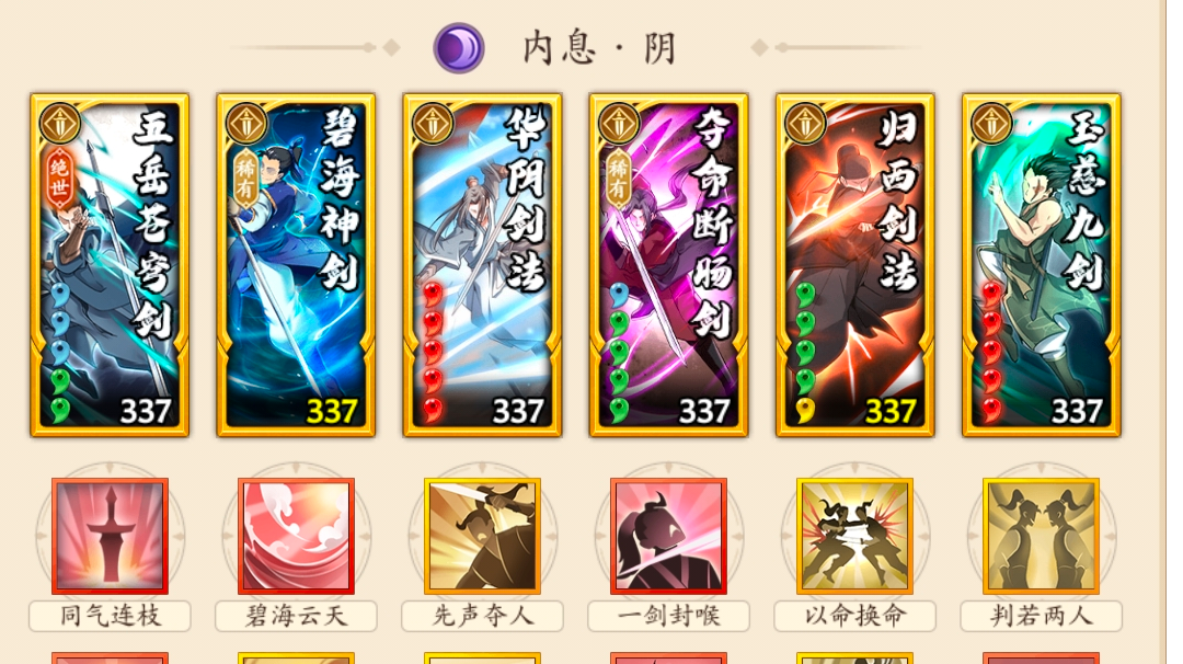 角色ID:1102590观前叠甲新版本对于阴剑的加强主要是断肠剑的加强,阴剑没有太多的上buff手段,碧海剑本身也不能上buff,故而碧海剑与阴剑适配性并不太高。与传统阴剑做对比,这套碧海阴剑在剑系内战方面胜率提高,打阳刀和阴拳胜率较为下降。淬炼优先四系,其次防御功力,尽可能拿到后手。五岳起手挂减防,佛心拉条增伤,夜行金烛为第二轮输出做准备。碧海挂buff,风起再次拉条,在风起佛心双拉条下