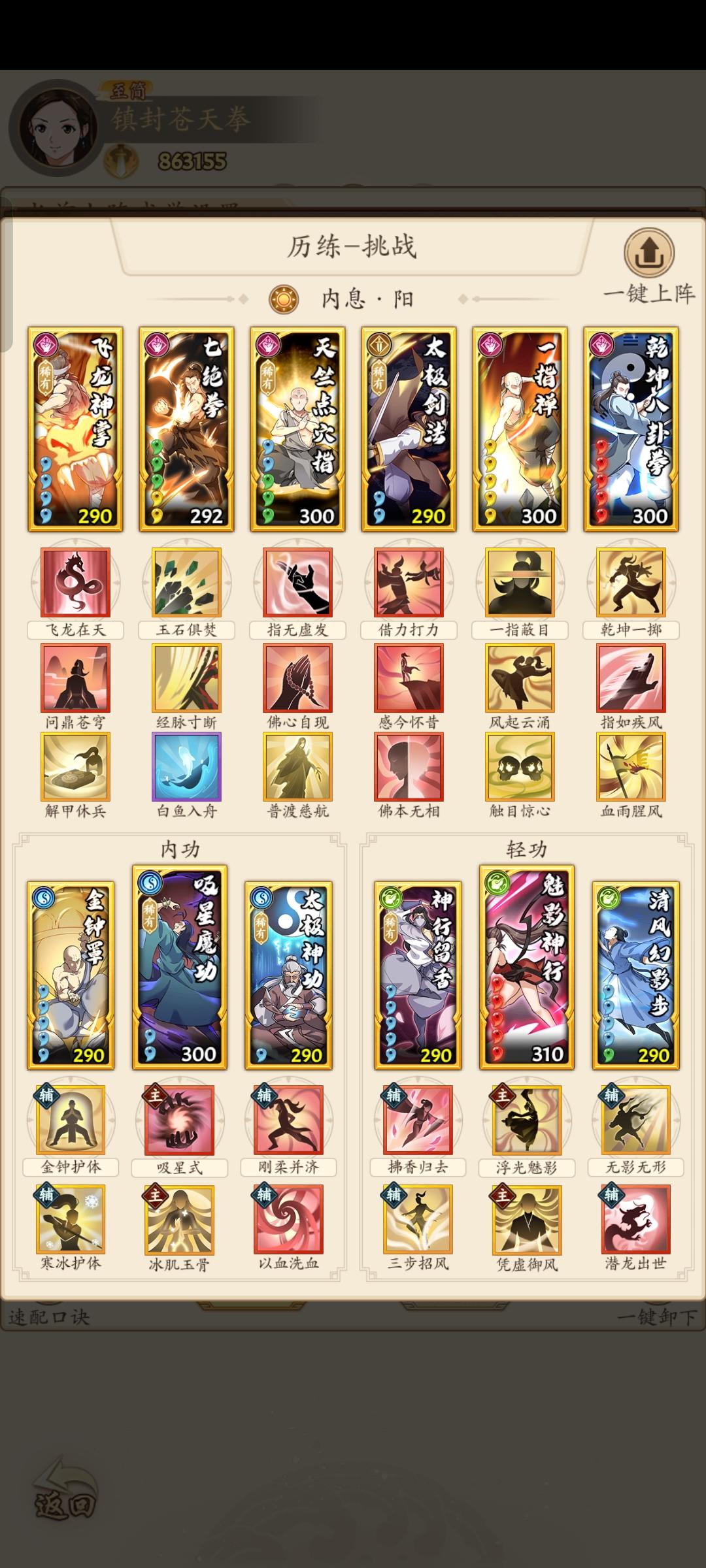 【吸内拳:“核🔥心”:】如果没有吸星魔功!那么阳拳内伤只能算得上是:debuff套路🎫🎫🎫运功招式:吸星式🎫🎫🎫🔑让耗蓝越战,爬塔,充满了可能性!🔥武学伤害,触发吸内8%以吸星为核心🔑思路:增加 武学伤害 →次数目前增加出牌次数的方法有两种:🍏1):多回合→连动传送门有基础知识,这里不赘述( 基础知识点:聚气,连动 )- TapTap🍏2):单回合→连击🍎🍎🍎:连动:
