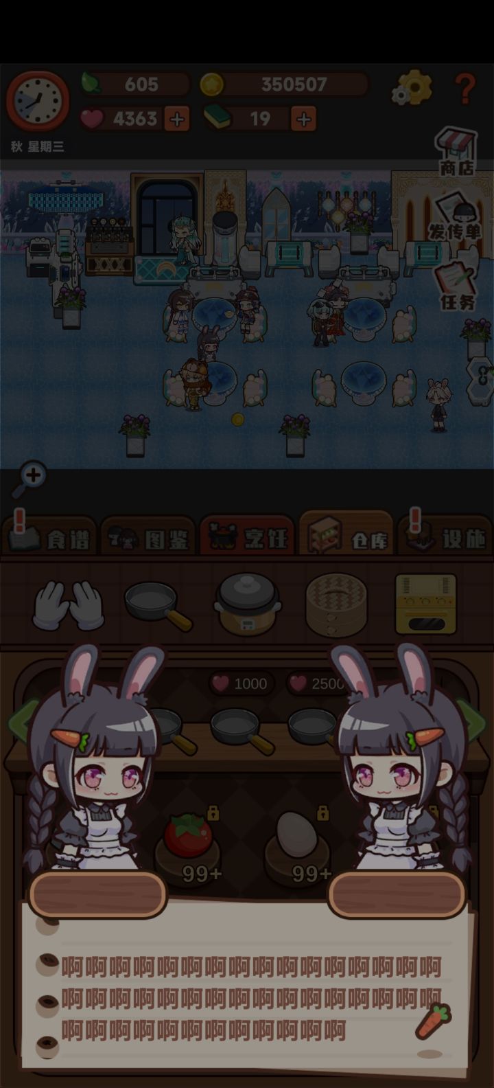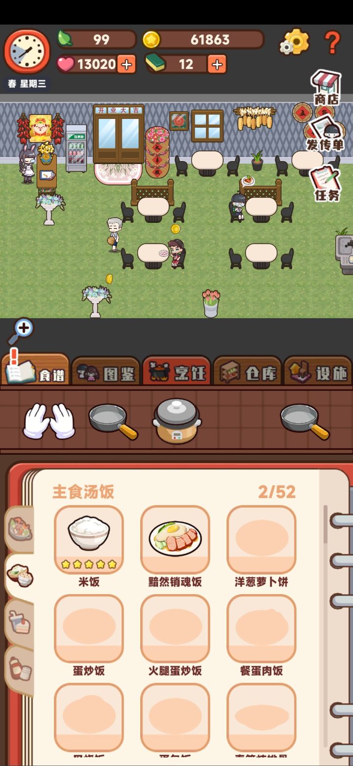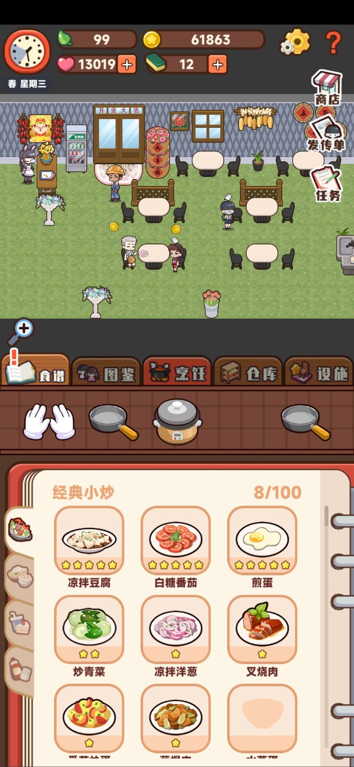 爱心怎么攒啊,已有的所有客人满意度都百分百了,一客人一个进度太慢太慢了,升级不了外部装修没有新人物,也买不了蒸笼,卡关了呀可恶(༎ຶ-༎ຶ)