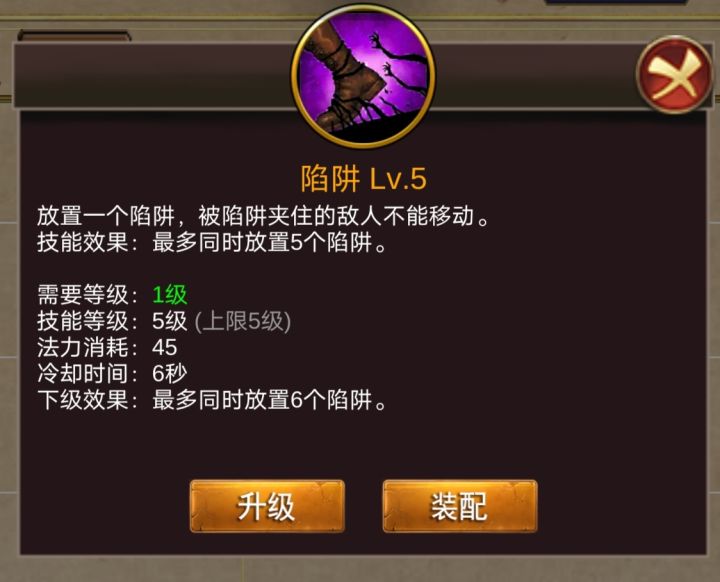 陷阱技能优化加强建议目前该技能升级一次可以提高陷阱存在的数量,升级意义并不强烈优化建议1(史诗级加强):取消陷阱技能CD时间,或减半技能cd时间,保留原升级一次提高同时存在的特性优化建议2(略微加强):修改技能为,技能升级每次放陷阱数量+1,数量增多但是只能触发一个,所有陷阱同时消失(图二),此项升级加强该陷阱的命中率。也可以直接更改加大陷阱的触发范围。同时cd不变