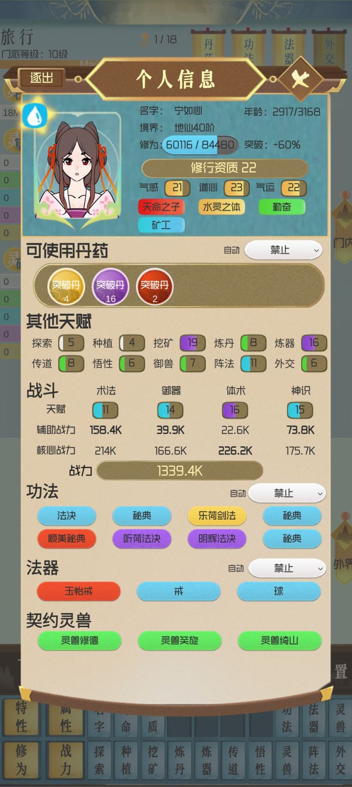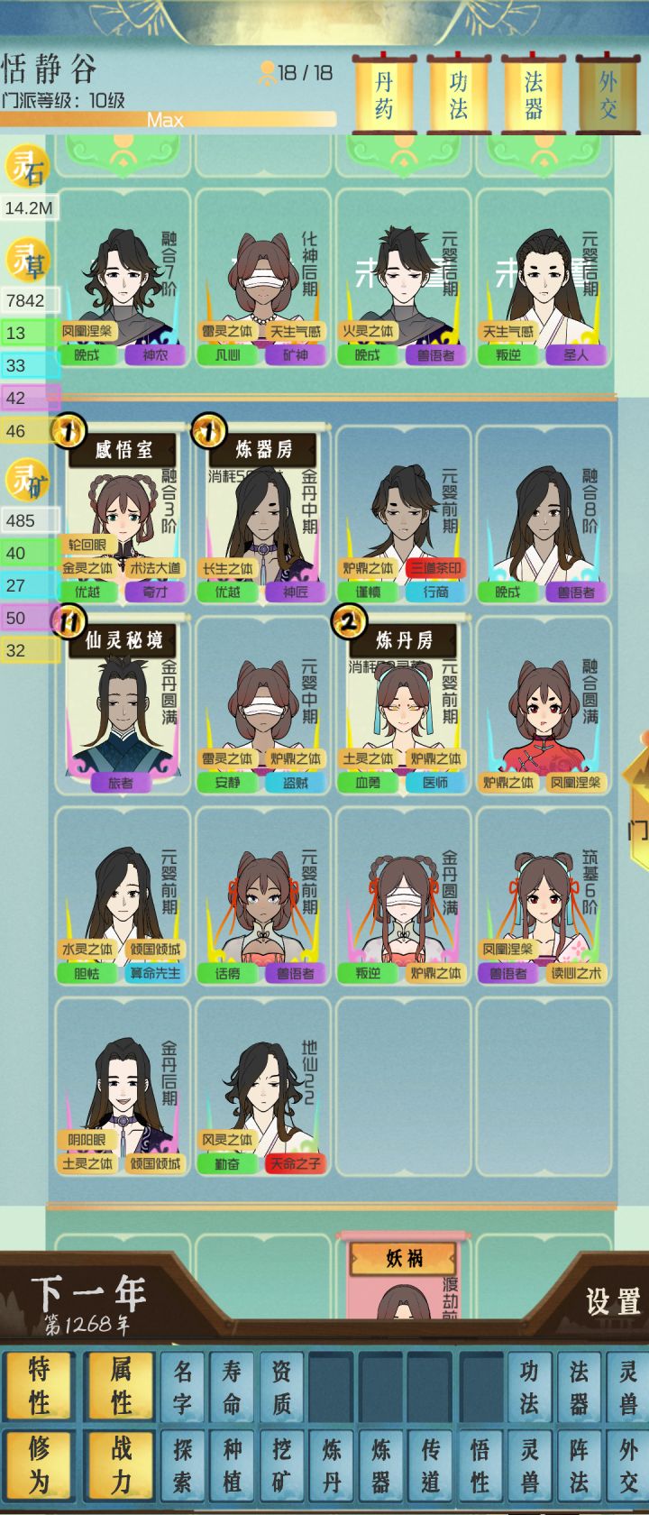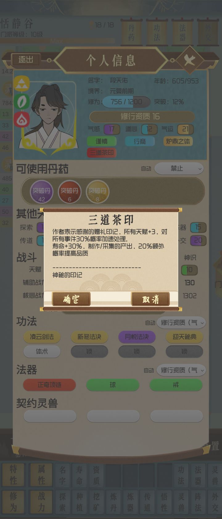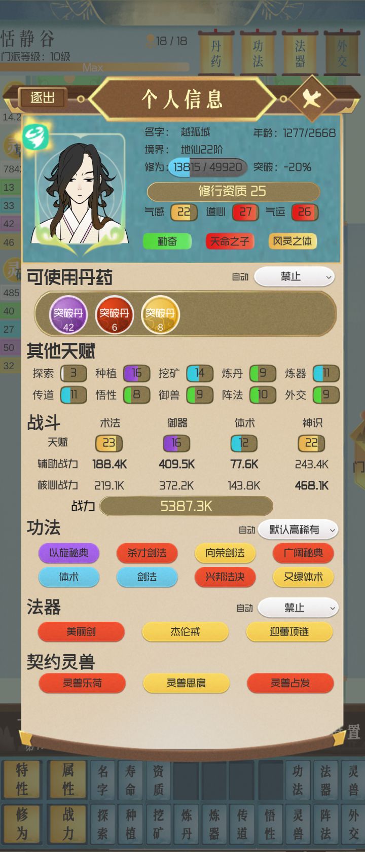 修行资质:比较重要,单人认为会影响后期长修为的快慢,一般会刷到14以上