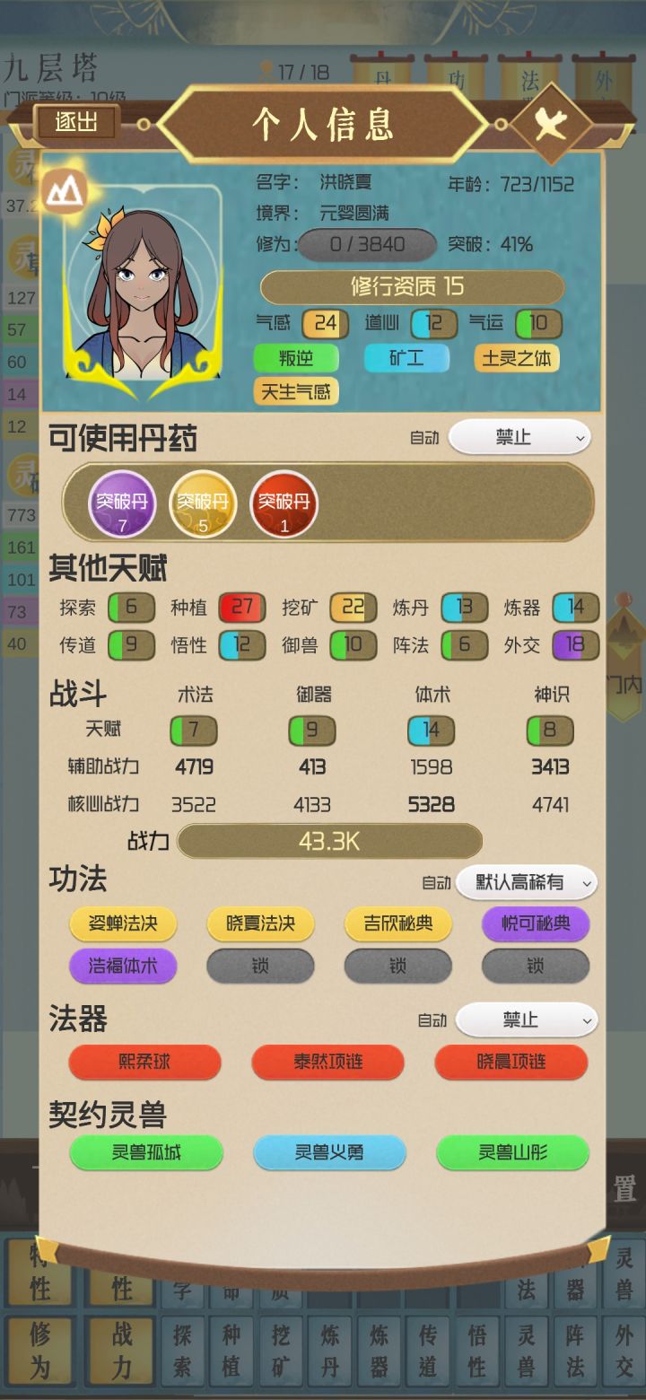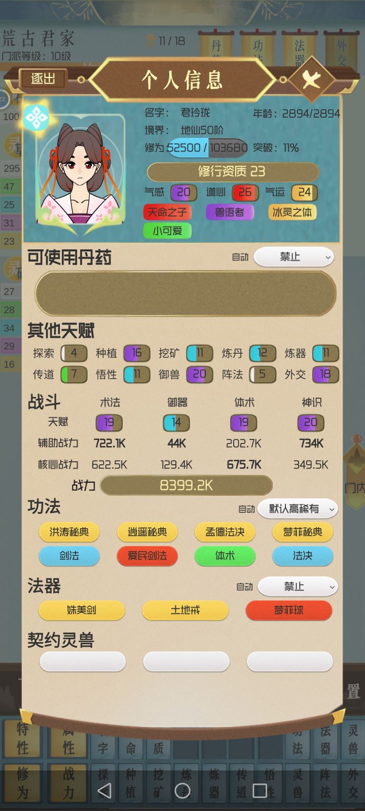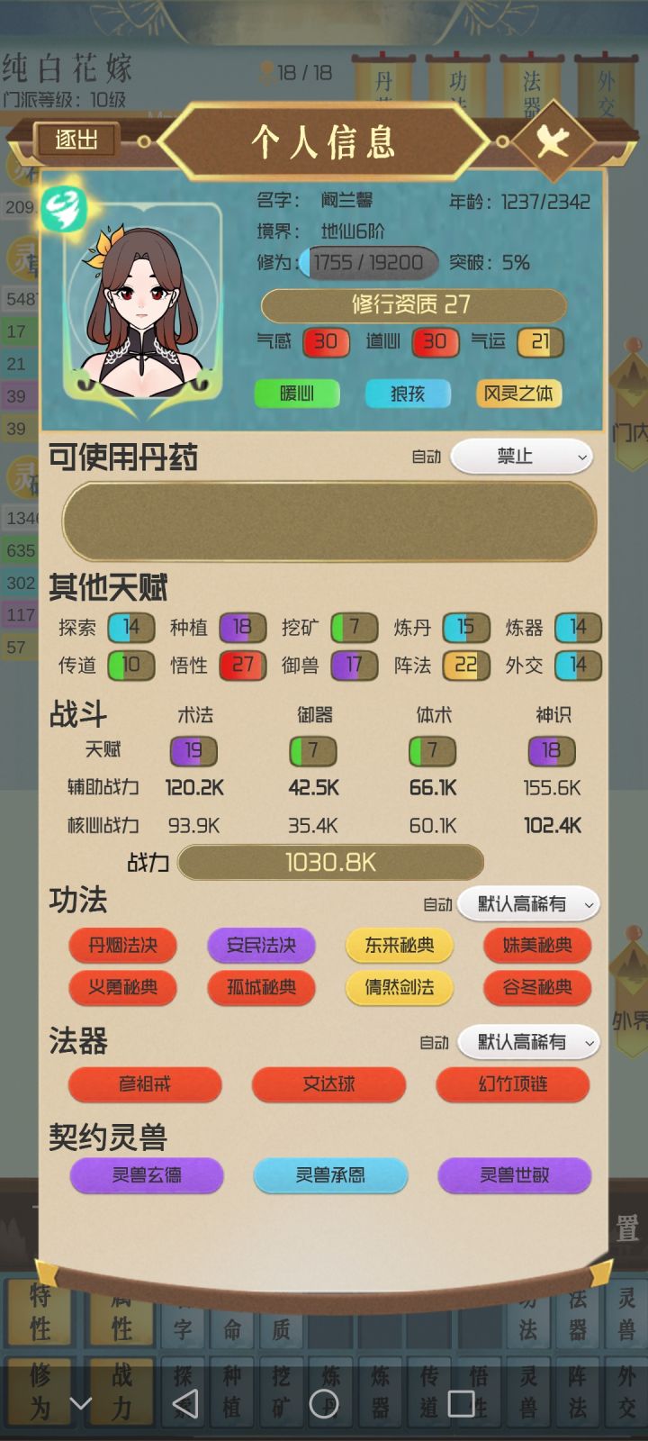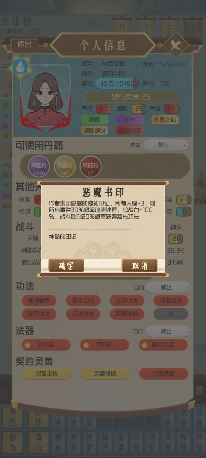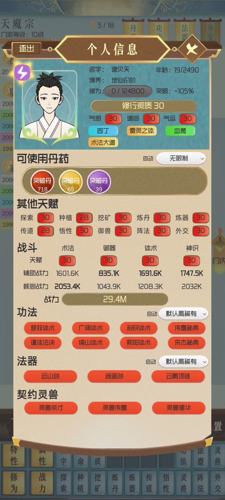 搞到地仙二十四就没什么好玩了,战力3937K。到最后就等着刷天地关卡,刷一个升一级。什么悟性丹都不用吃。