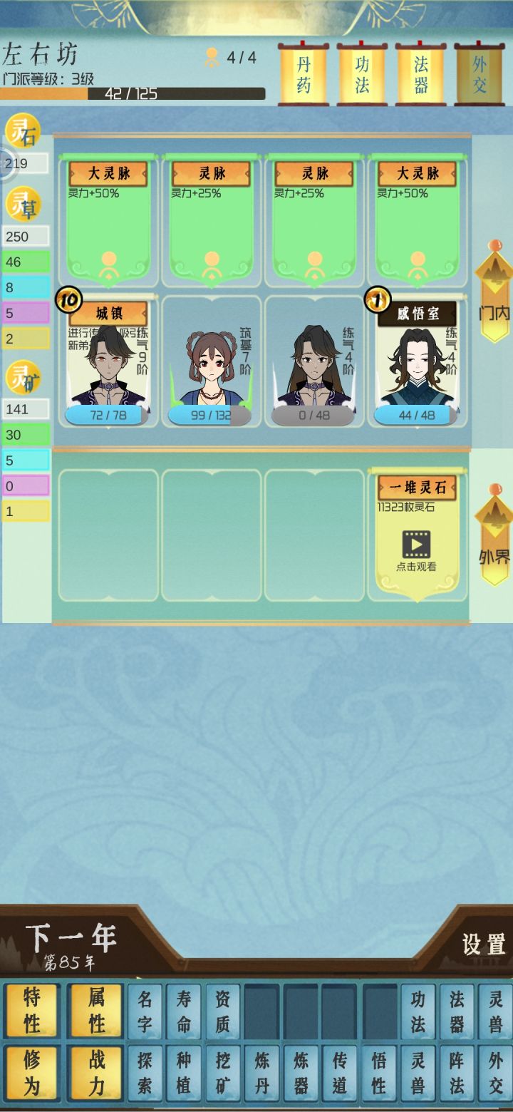 卡在这里没法进入下一年,一直点下一年只会出现灵兽不出现其他事件也不加寿命