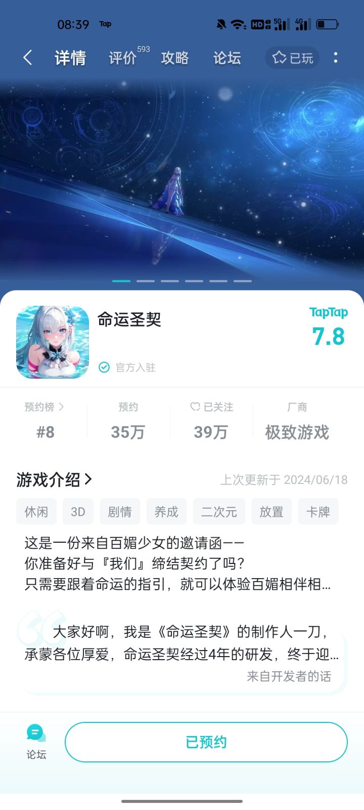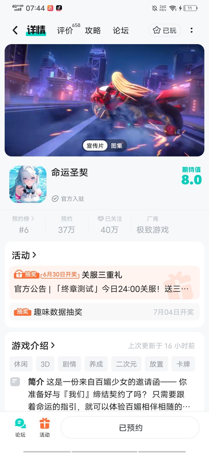 这是一份来自百媚少女的邀请函——你准备好与「我们」缔结契约了吗?《命运圣契》将在6月19日正式开启「终章」删档限量测试* 目前游戏仍处于研发调整阶段,测试内容不代表最终游戏品质。 ★ 终章测试地址:★ 测试信息: • 测试时间:6月19日★ 测试类型: 本次为限量计费删档测试,测试结束后会对服务器数据进行进行删除处理,玩家在测试中所产生的任何角色数据都不会保存。★ 测试平台及配#发现好游戏