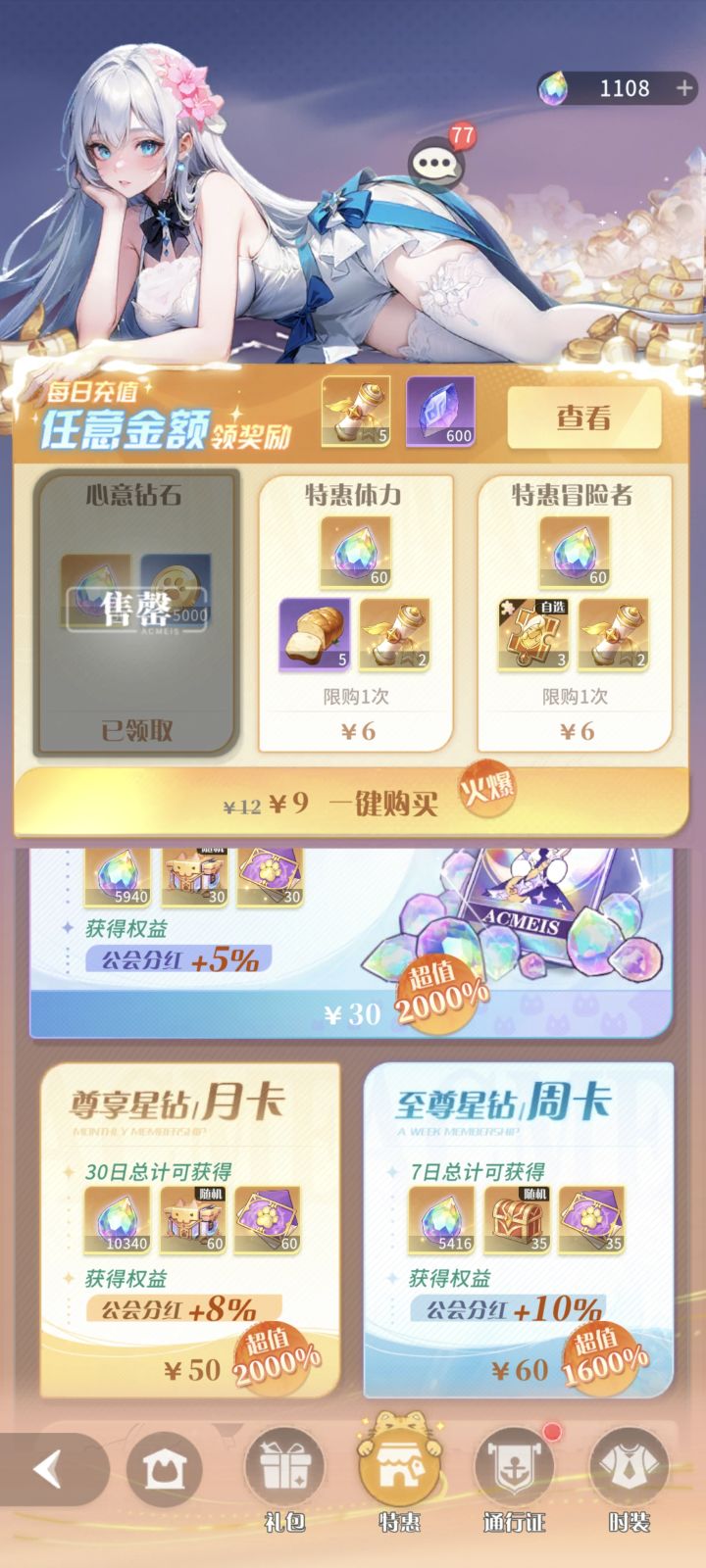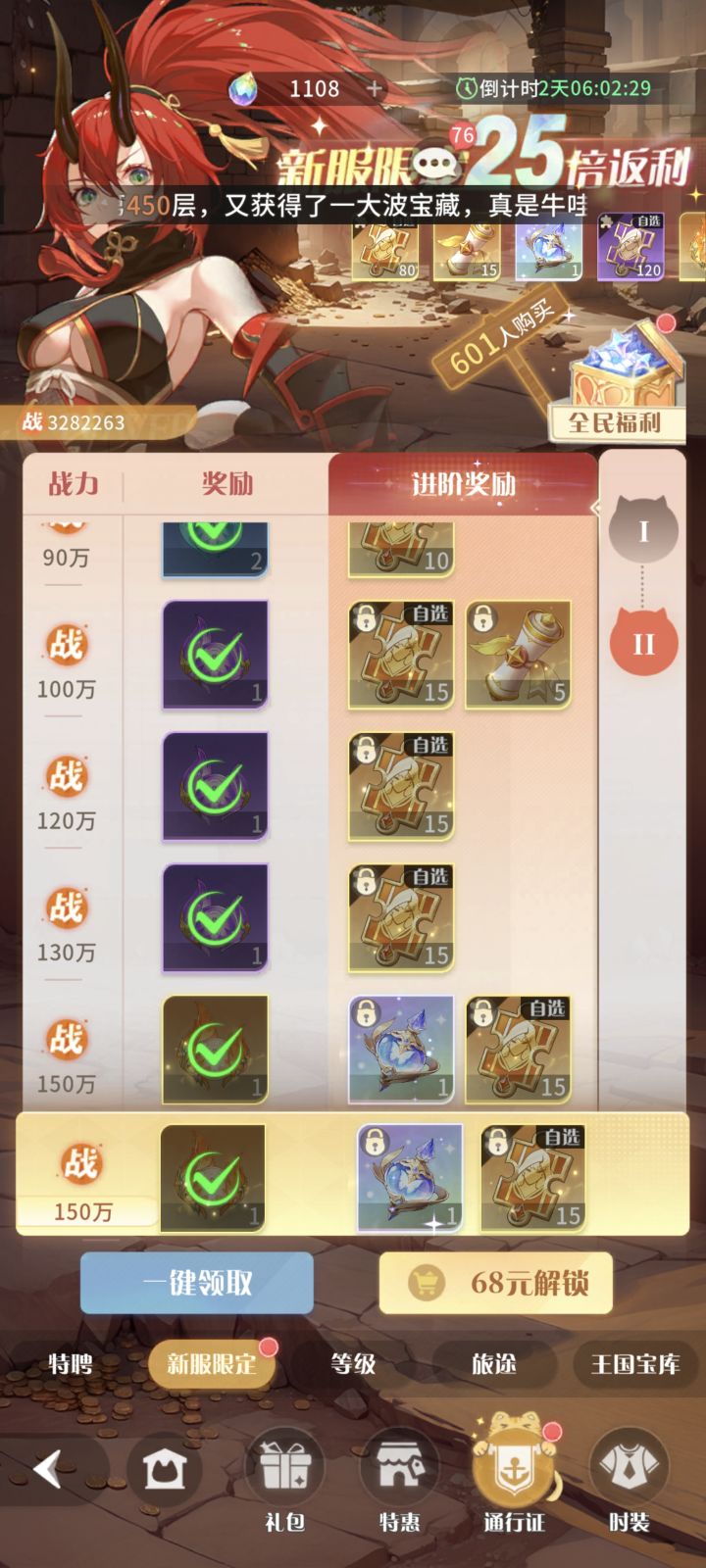 氪金不知道氪了多少了反正2000应该有了,说一下这个游戏为什么给这么点分。这里说明一下,有男没男我不关注,所以没有扣分在这里。立绘:只能说一般,比起宣传片来说差的不少,而是球上面现在已经开始盖上布了。(不算太重要)玩法:没有玩法,基本上战力碾压就能推过去,可以说这个游戏战力大于大部分的机制。毕竟战力游戏能理解,基本上都是提战力然后碾压图,没啥太多的操作。玩家留存:我可以说战力游戏想要留存玩家