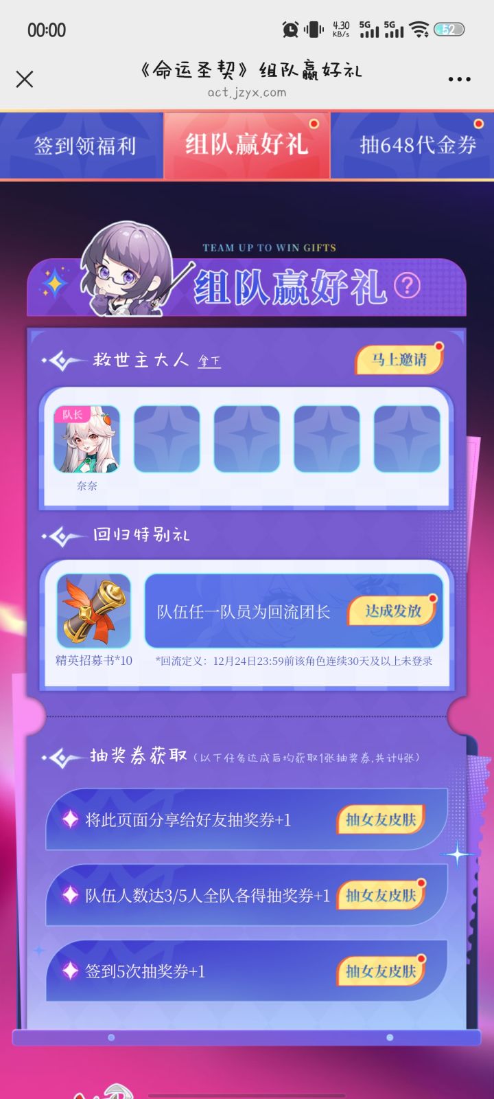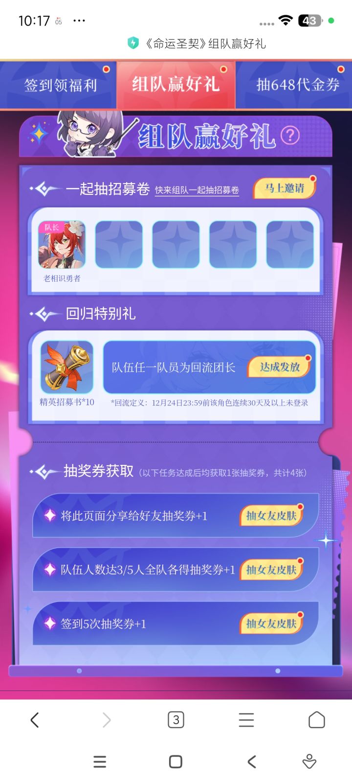 一起来组队一起抽&648礼券还差一人快来