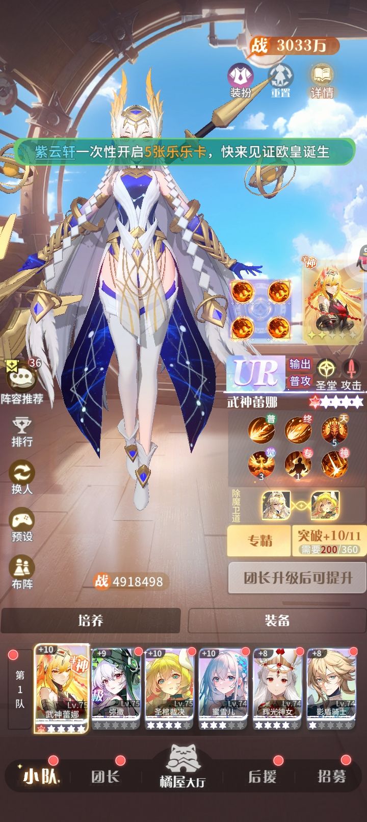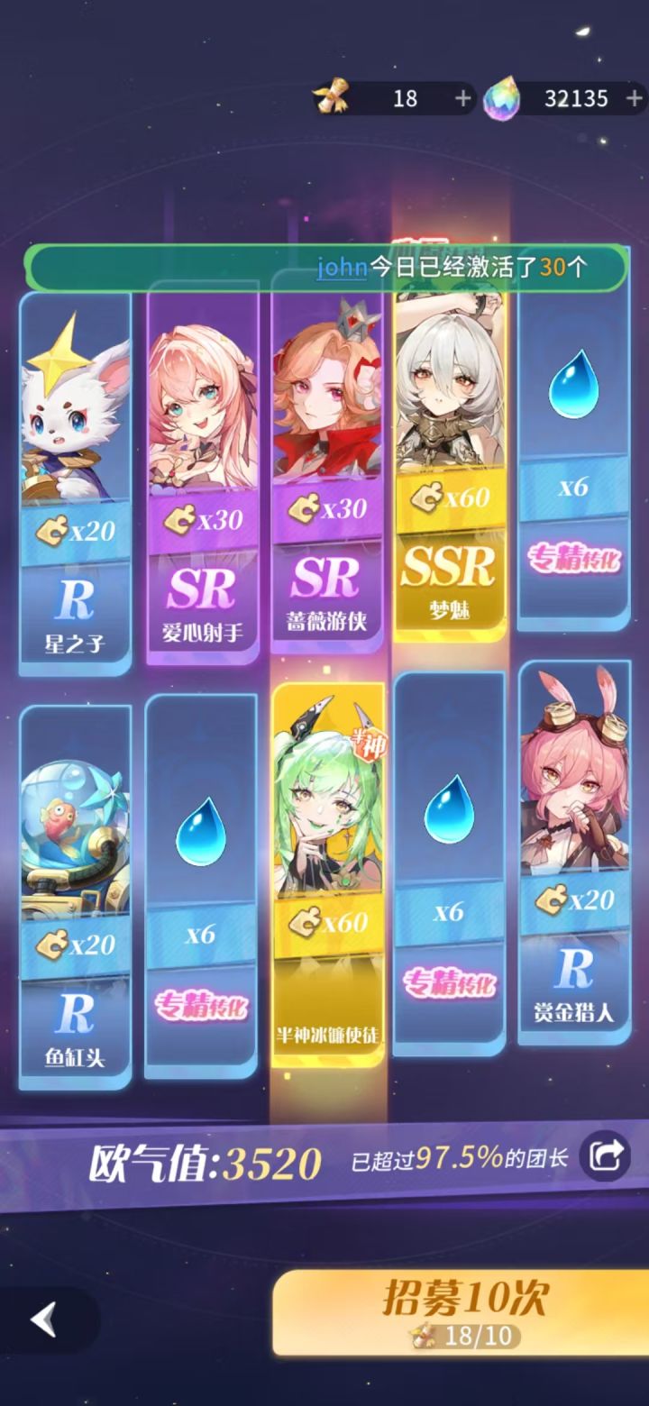 微氪命好,目前甜心小毕业,不打算洗了,目前刚出艳舞, 棺材正再养目标阵容 军娘+甜心+棺材+莉莉丝+艳舞+司命