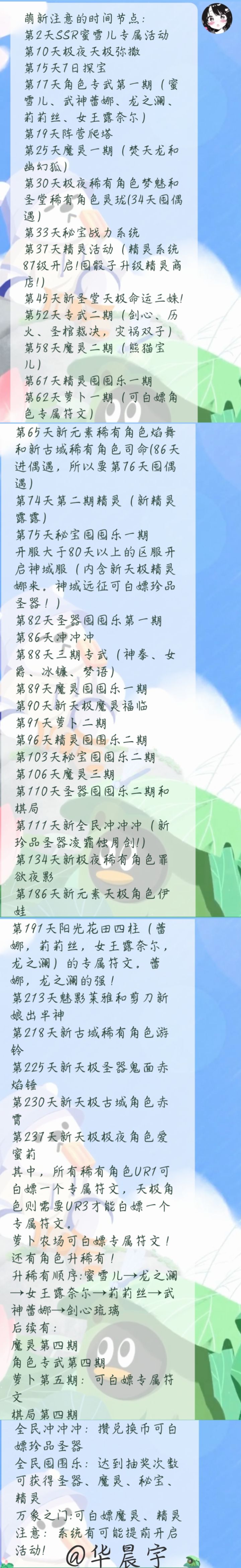 #攻略投稿6 #攻略征集6 #命运圣契 #游戏日常 #浅评一下 我是S49区的华晨宇 我的ID是226801049 新手前期阵容推荐:蜜雪儿+剑心琉璃+龙之澜+女仆+菖蒲+哞哞号手。(主养剑心,剑心拉到ur1就行了,普通池挂心愿剑心琉璃和龙之澜,每天抽一个,因为成长之路有一天内出两个心愿的任务,把券留着,自选也留着,等梦魅和灵珑出了,进自选后拉到UR1白嫖专属符文)第30天抽灵珑换下女仆