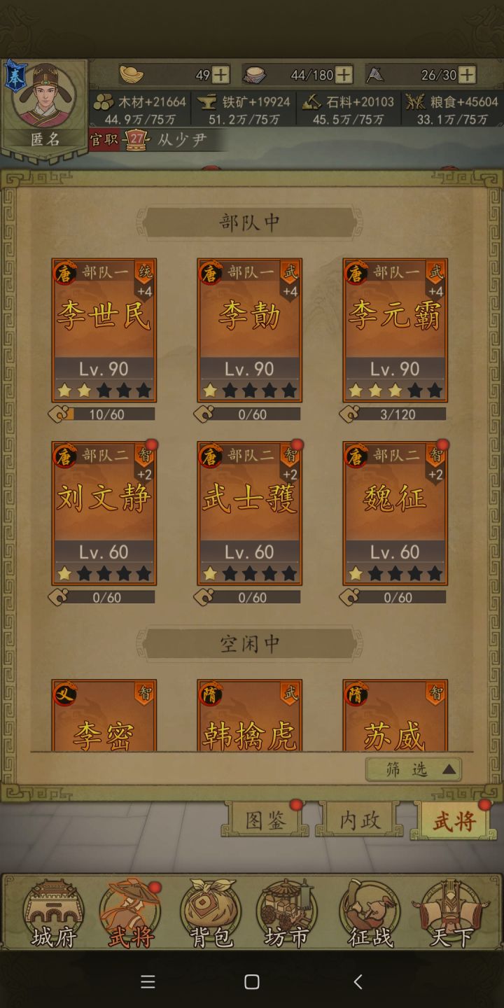 经历五天厮杀终于统一二区称帝,不废话耐心看一共三队(开荒队)(爬塔队)(pk队)为什么要组这三队?李世民战法传承三省吾身可以给李密林士宏战法传承暂避锋芒可以给李世民杨广战法传承烈火藏刀可以给林士宏苏威战法传承人心所向可以给刘文静在战法为王的游戏里面非常经济实惠………………………………………………………………………. 第一队:开荒队 .特点:缴械拉满,AOE群体伤害拉满,还有