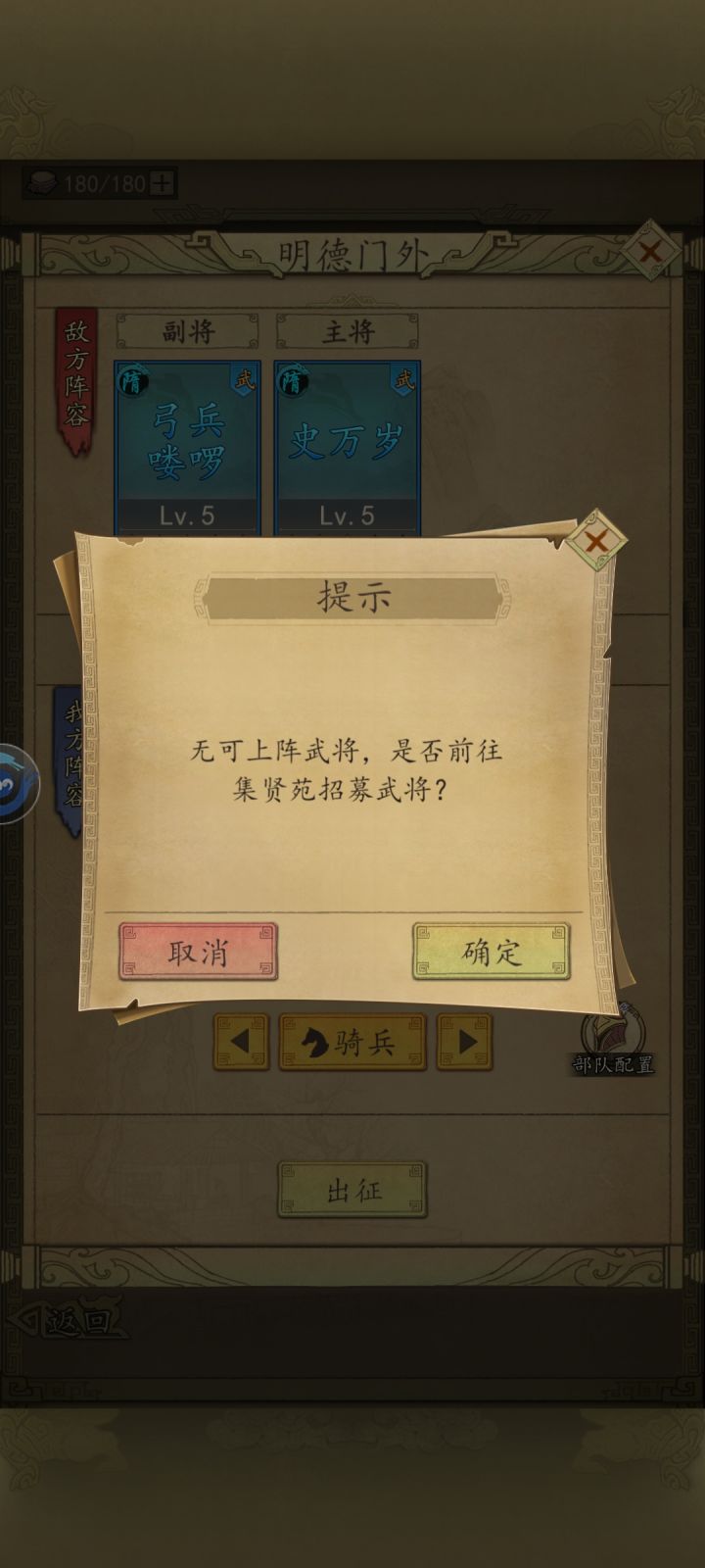 这怎么办,我先升级的点将台,但只有俩武将,打不成了,怎么办,这是个bug吧