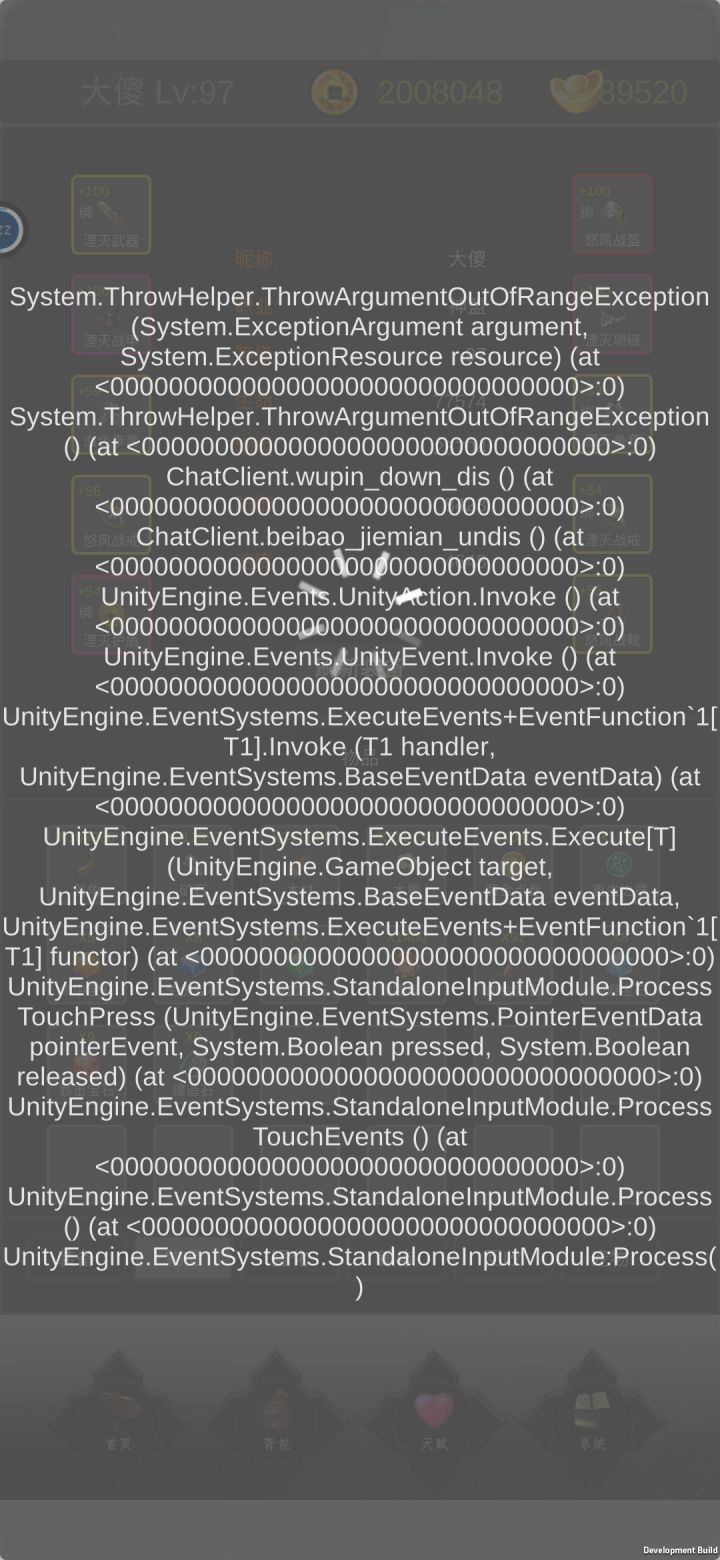 背包物品栏一打开就bug.人物名:大傻