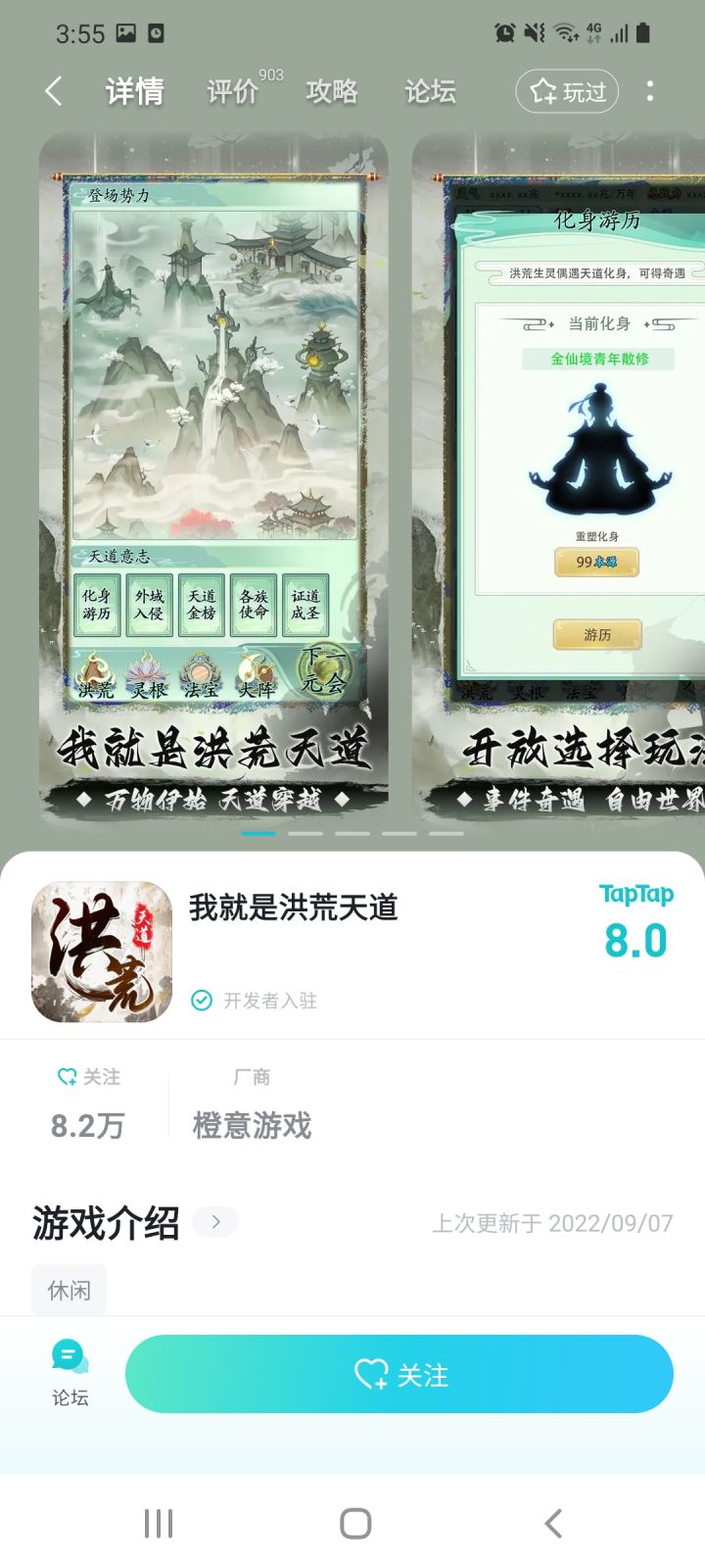 如图,只能关注不能玩