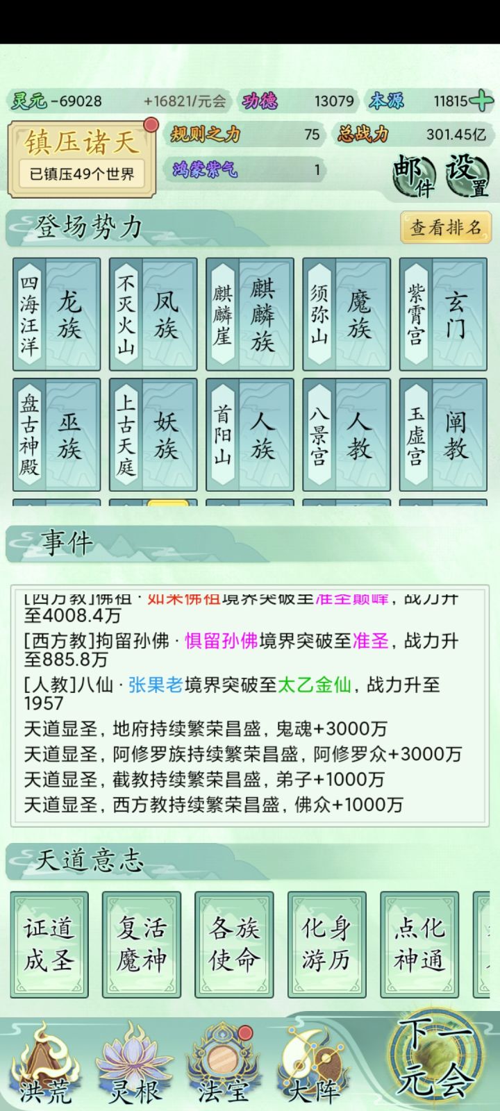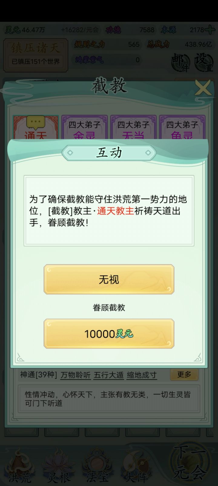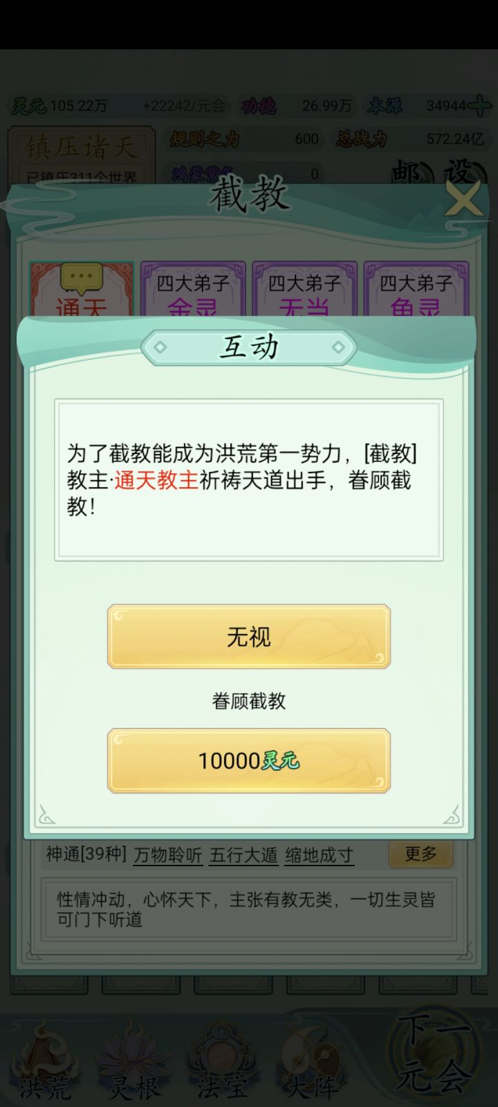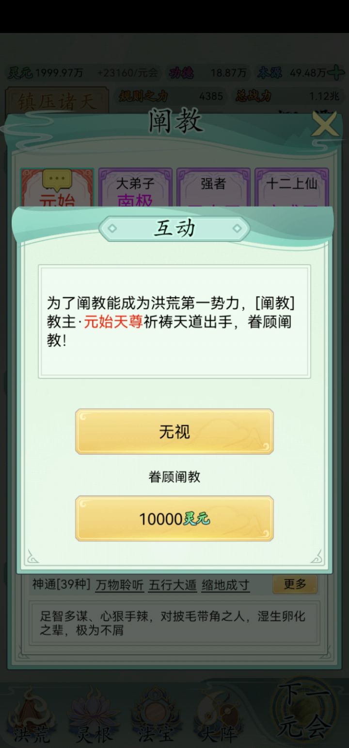bug,经常卡这里,点啥都没反应。退出游戏在进灵源为负数,在点下一回合灵元显示nan,再下一回合灵元清空就正常了,