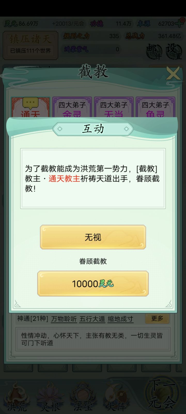 有重大bug,居然明明我的冥河道人神通战力几千万了,结果排行榜显示神通战力才100万,这太崩了吧