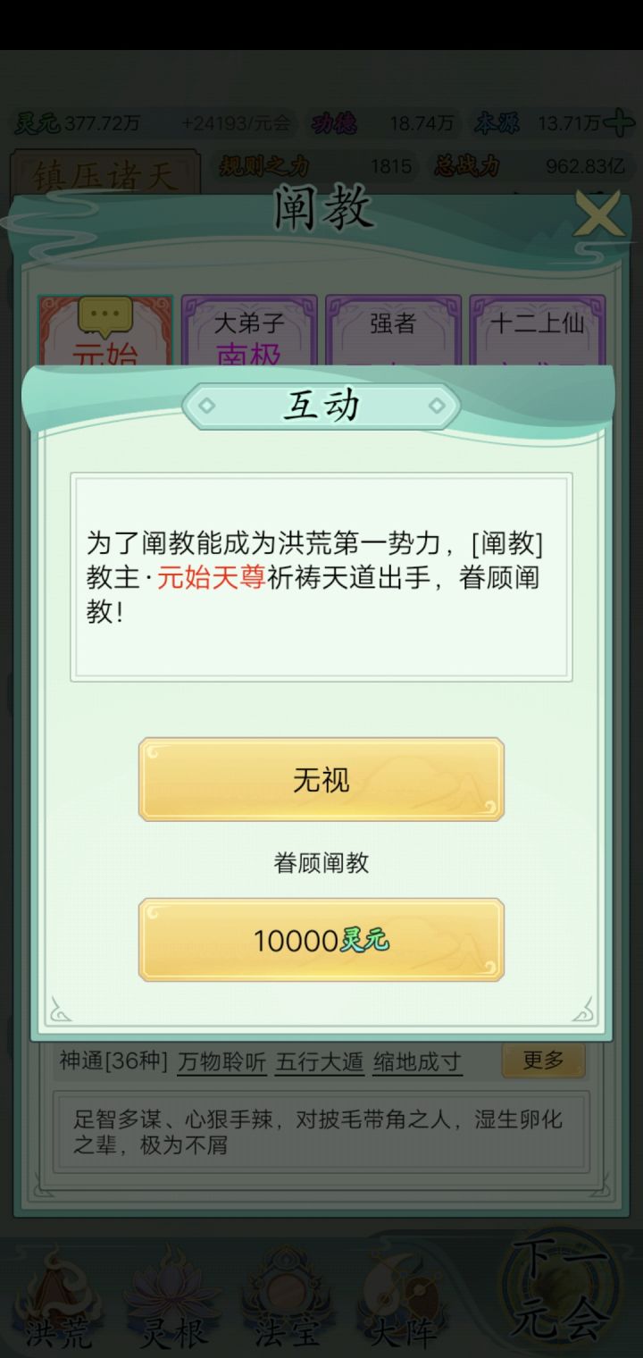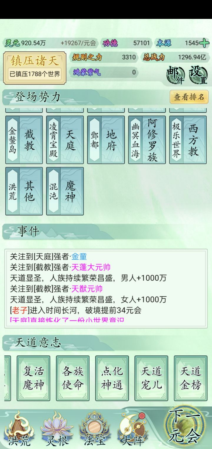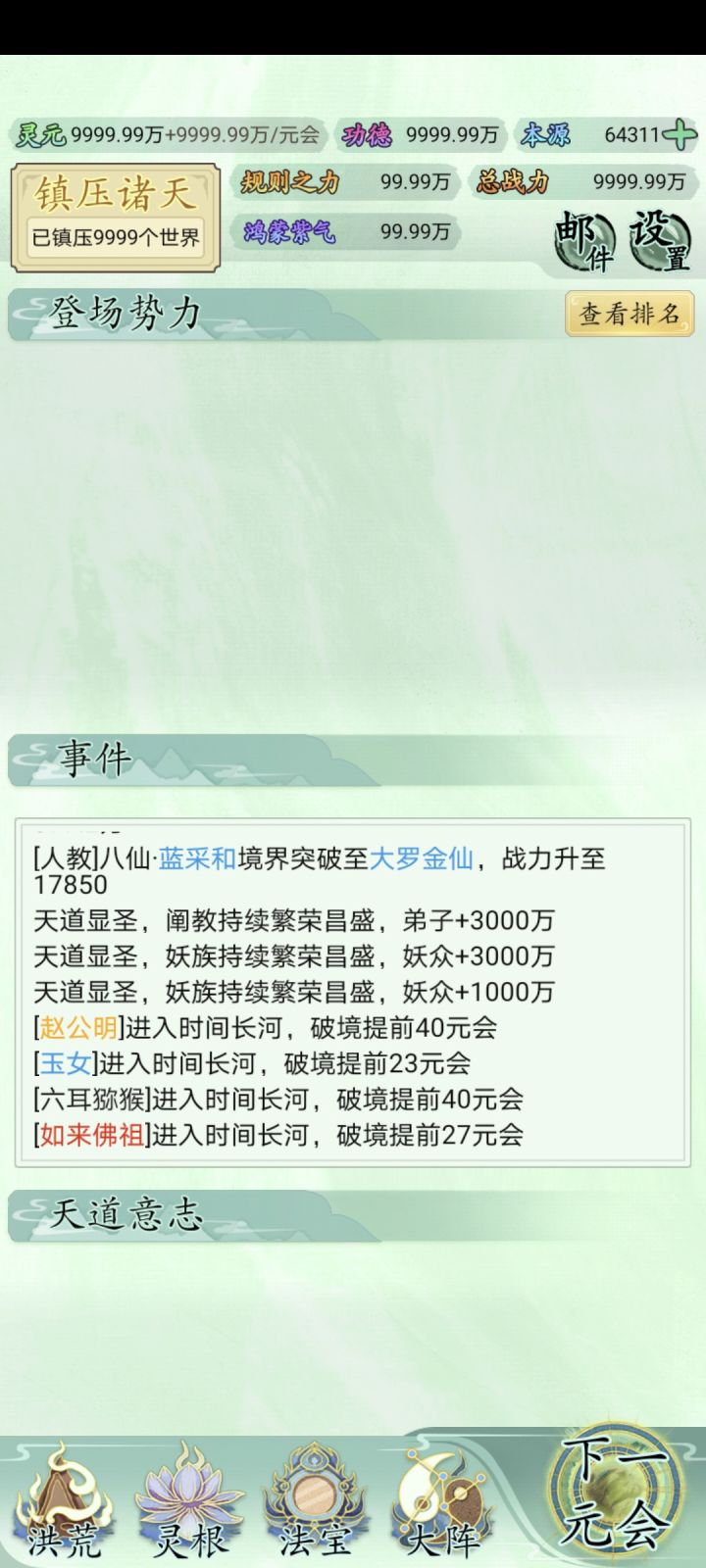 官方能不能给望舒一个抢法宝的权利,以后可以自己建势力和自创人物(花本源或者功德决定品质)吗?洪荒天道能进化成大道,只有解锁更多功能,希望有更多新奇的玩法新的功能量劫希望游戏能更好一些,官方加油