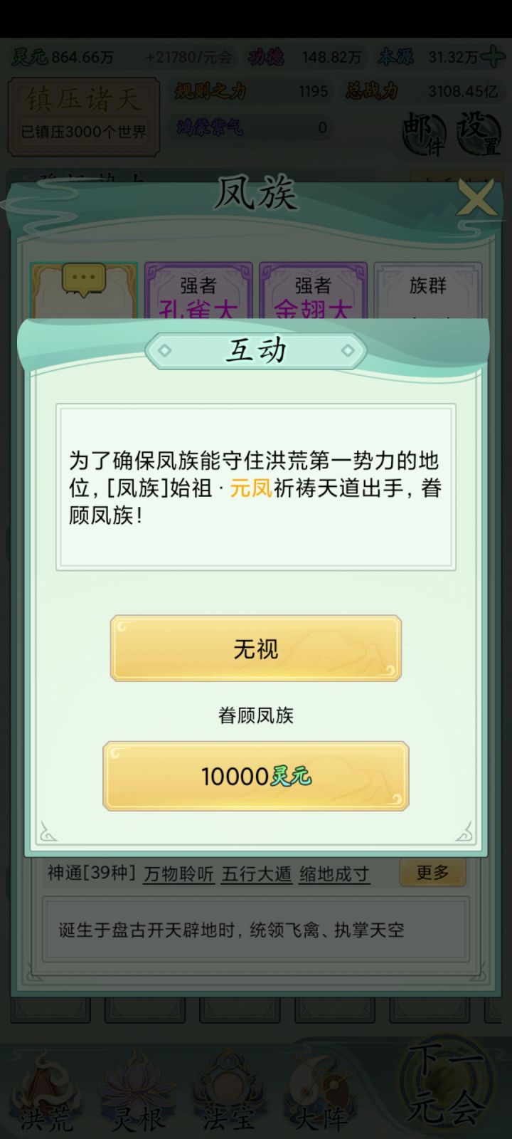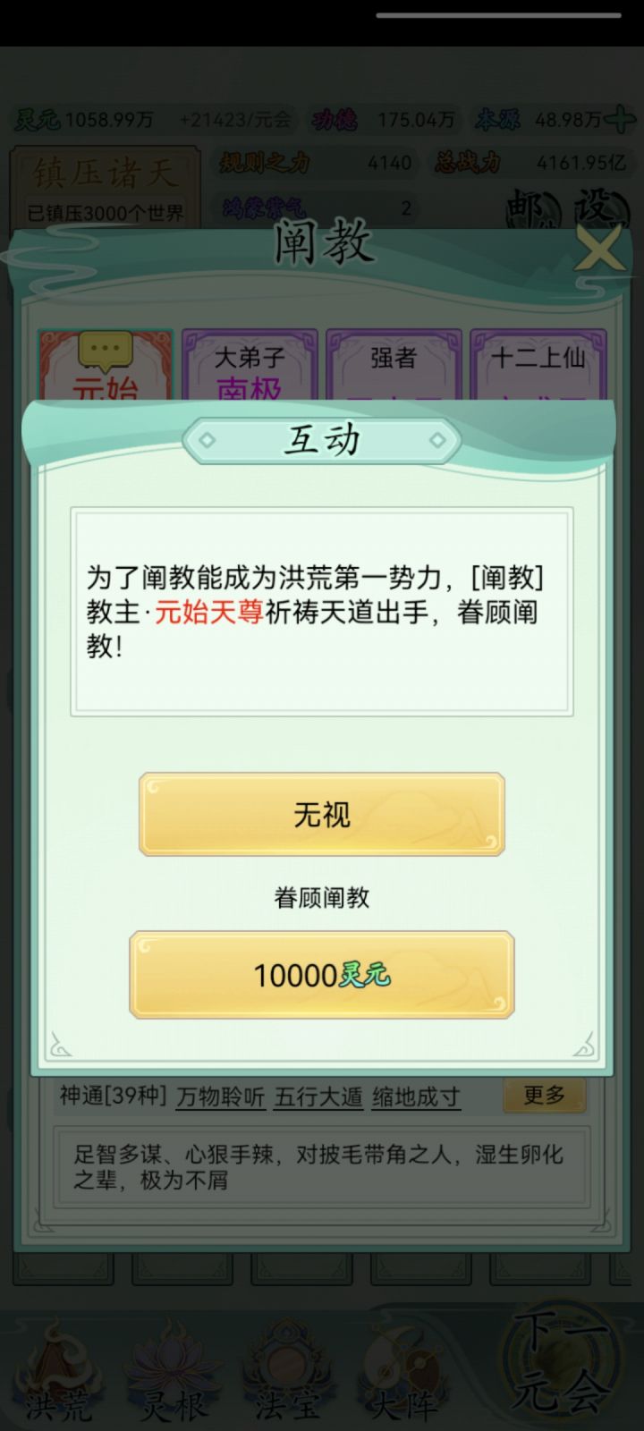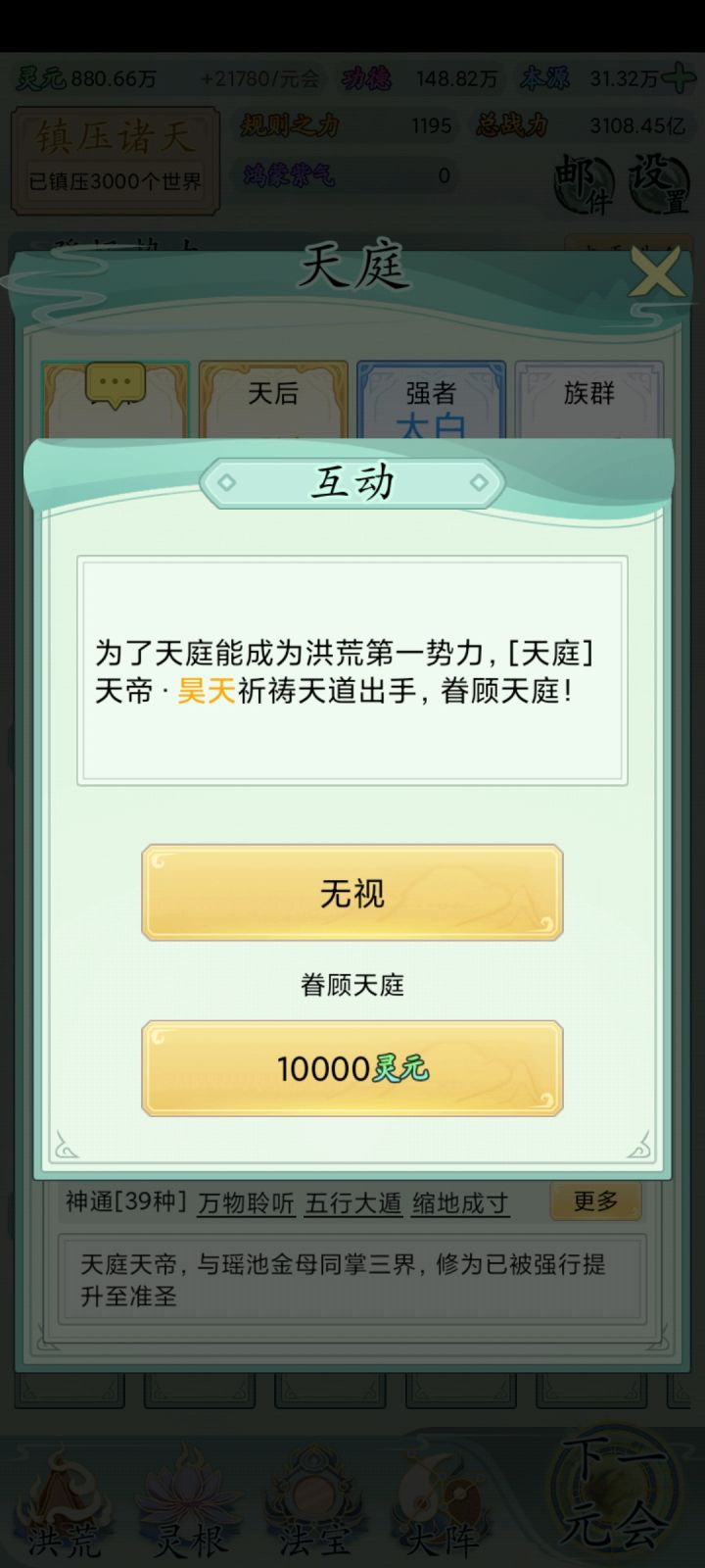 官方能不能给望舒一个抢法宝的权利,以后可以自己建势力和自创人物(花本源或者功德决定品质)吗?洪荒天道能进化成大道,只有解锁更多功能,希望有更多新奇的玩法新的功能量劫希望游戏能更好一些,官方加油