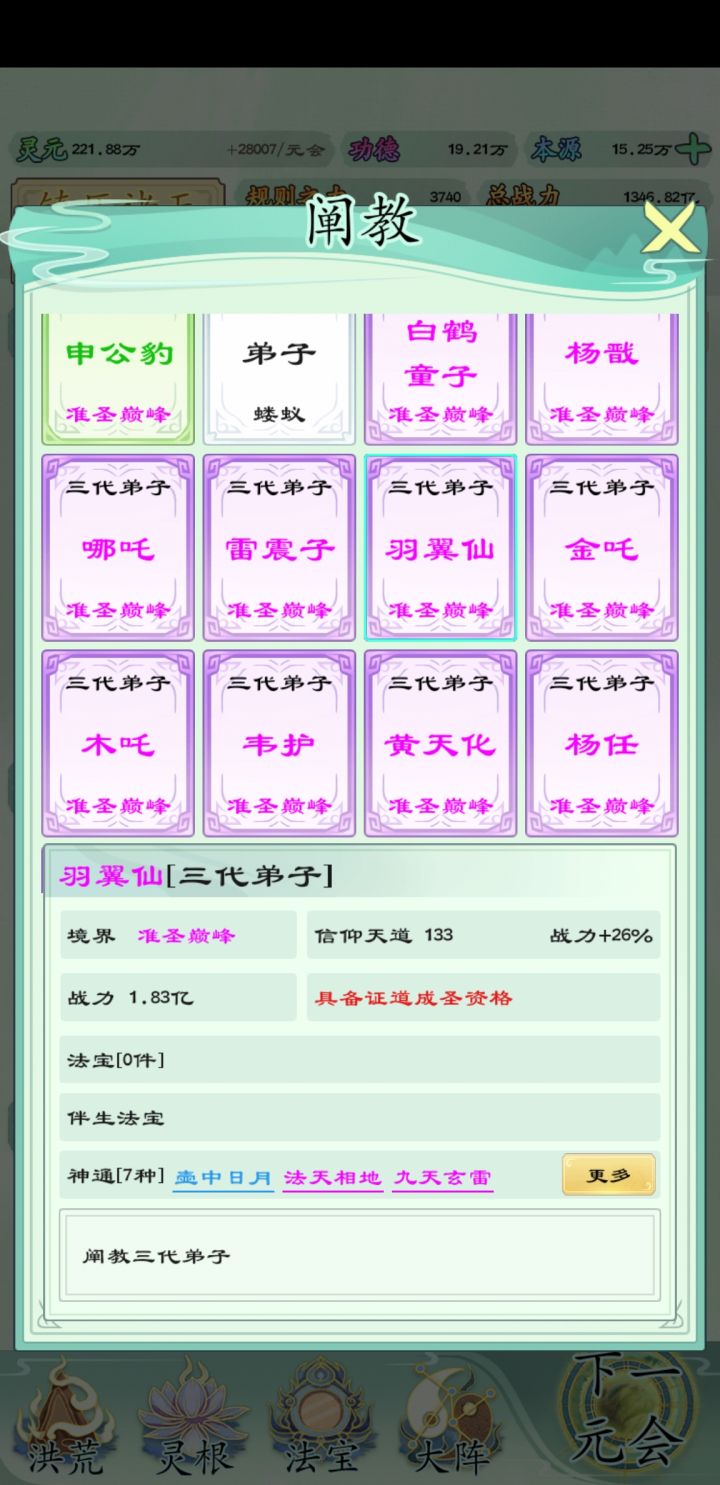 bug反馈及角色建议如图,羽翼仙应该是截教的,莫名其妙跑阐教当卧底去了?角色方面冥河老祖的修罗族就他一个,是不是还可以把四大阿修罗王天波旬,大梵天,欲色天,湿婆,和四大阿修罗将因陀罗,吡湿奴,鲁托罗,鬼母,和天妃乌摩都加进去?后续是不是可以把西游量劫的剧情加进去?