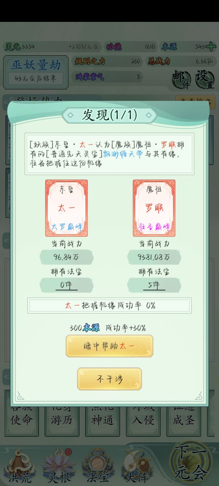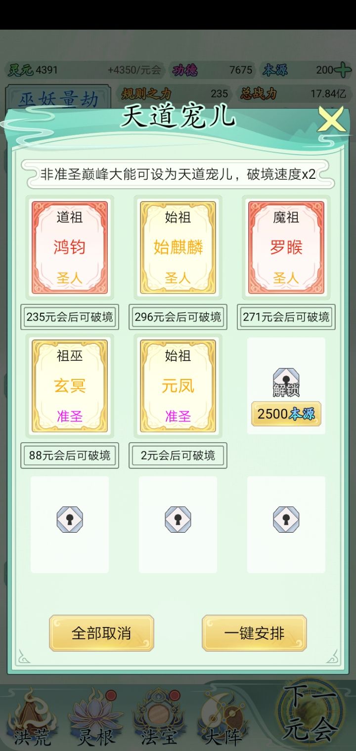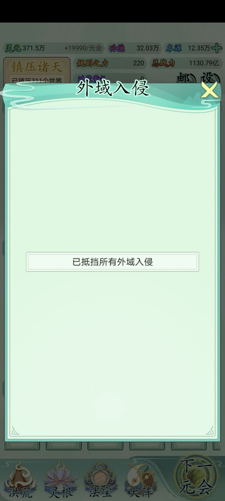 第一点,罗喉没法刷天道,第二点神通最高显示2.3亿没法在高,第三点阵法除了灵元其他两个不给加,建议解决一下最好出个十元会什么的直接跳过,一次一次点太麻烦了,然后任务化身啥的直接自动,那个省略号再见点,最好改进一下镇压诸天的玩法,到镇压诸天就没意思了,太单调,而且四种突破方式没啥大区别,我现在都是一千本源就突破