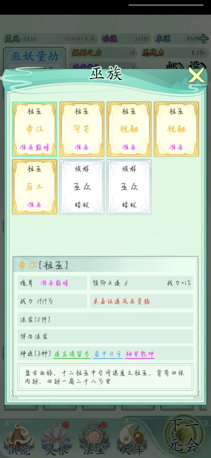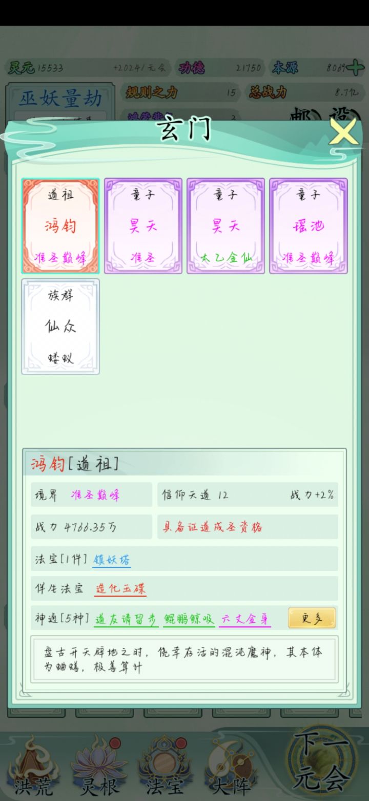 看不可以出个捏人,毕竟后期玩法有点无聊,可以出一个自己设定一个角色然后投入洪荒