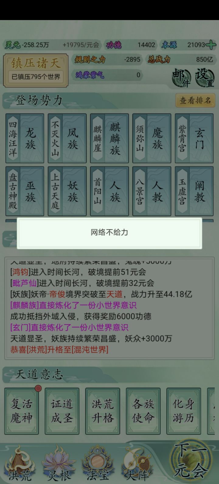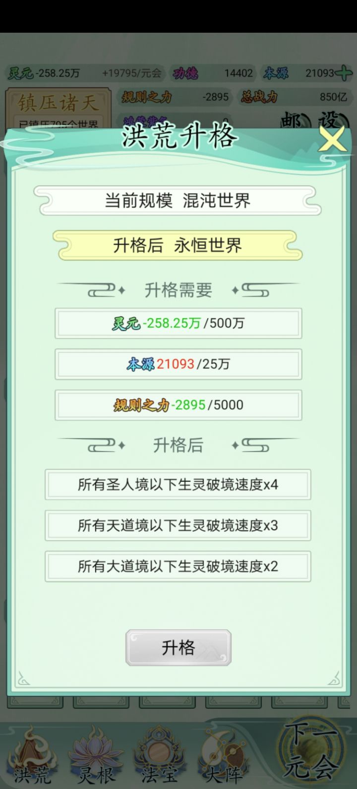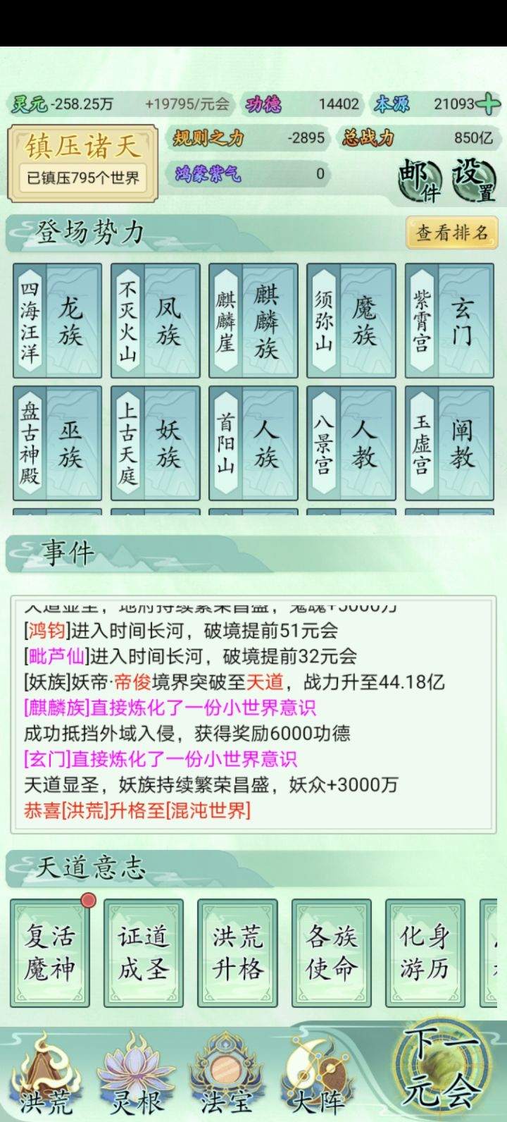 升格完洪荒之后基本就没规则之力了,而规则之力又特别难获取,累了,毁灭吧