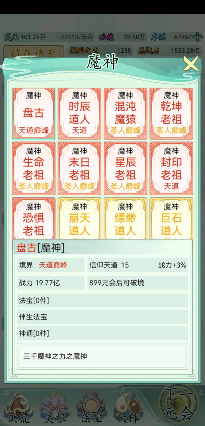 你好,请教一下为什么盘古这些魔神都不会抢法宝,而且都没有伴生法宝,也没有阵法加成,而且也触发不了天道任务😂