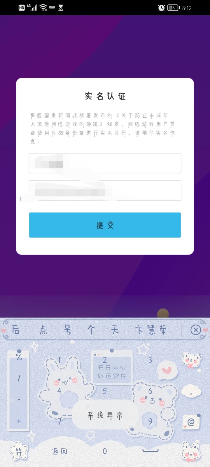 这我一弄实名验证就系统异常