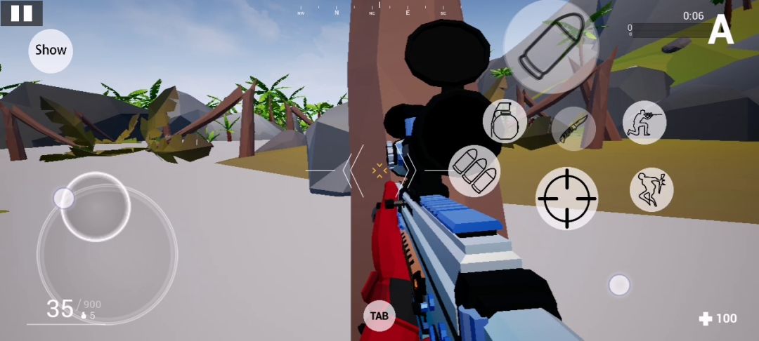 这两天我把所有武器都试了一遍,发现一把破坏平衡的枪,就这个第三栏的红武。它跳跃高度极高,跟马猴似的,开局直接蹦,跳起来比房子都高,可以直接跳上地图的山上或者房子上,然后蹲下来开镜怼着别人家突突,一局30+k不成问题