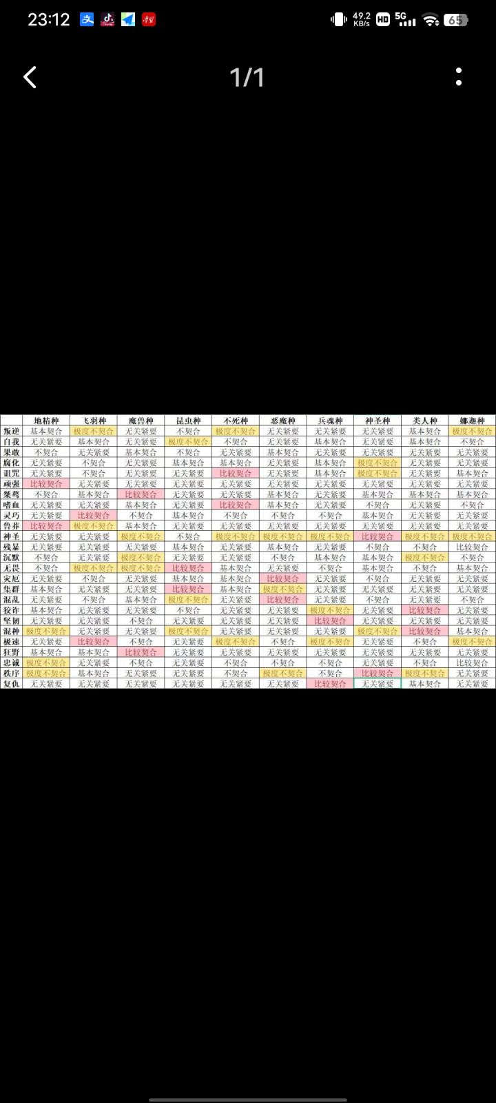 契合度图鉴,感谢群友发的攻略,如有错误请留言