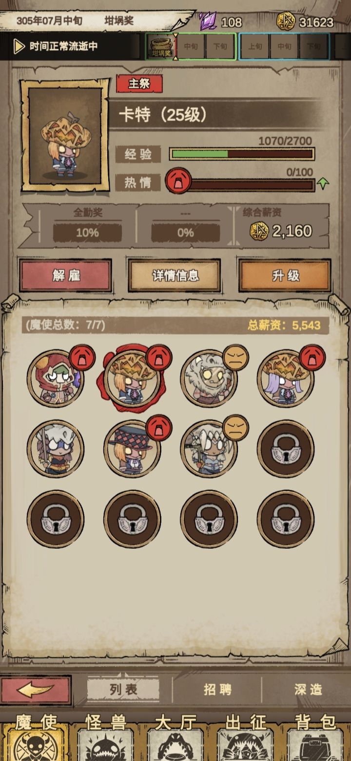1、种族和个性比较契合就开始不停的召唤。2、城镇会回血,卡关了就攒上20只莽过去。3、魔使主升一个,经验书都给他。4、召唤选项左上的法阵也能换。5、包里的东西能用就用了。缺点:广告模拟器打架不能跳过不知道作者怎么看自己的游戏,这游戏玩法是什么?又不能放置,还得上线闯关,不停的抽个性和种族,试完美契合,剩下还有的乐趣点在哪?