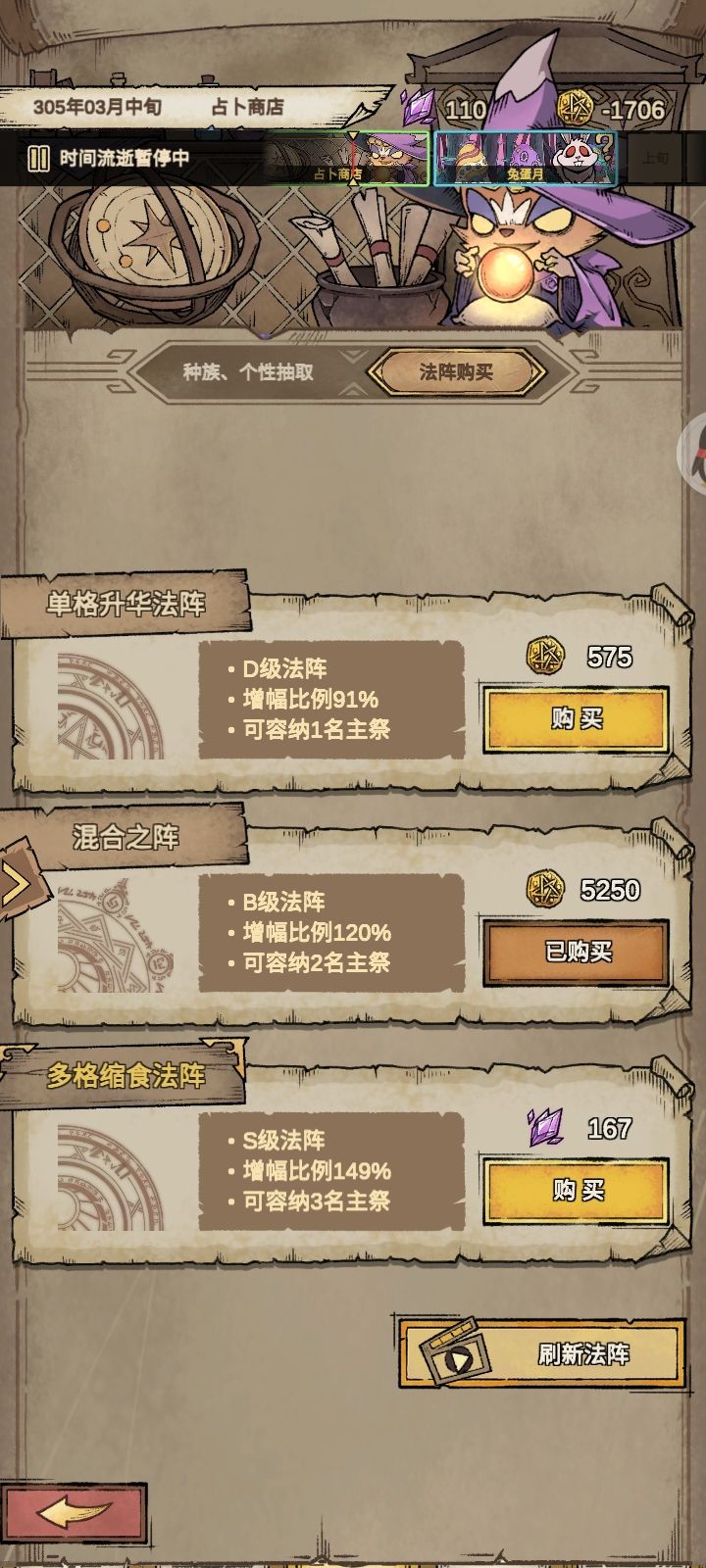 我存了好几天的魔晶,为了买个S法阵。刷新出来了167,购买了魔晶没了😂😂😂😂😂😂😂😂😂😂😂😂😂😂😂😂法阵也显示没购买