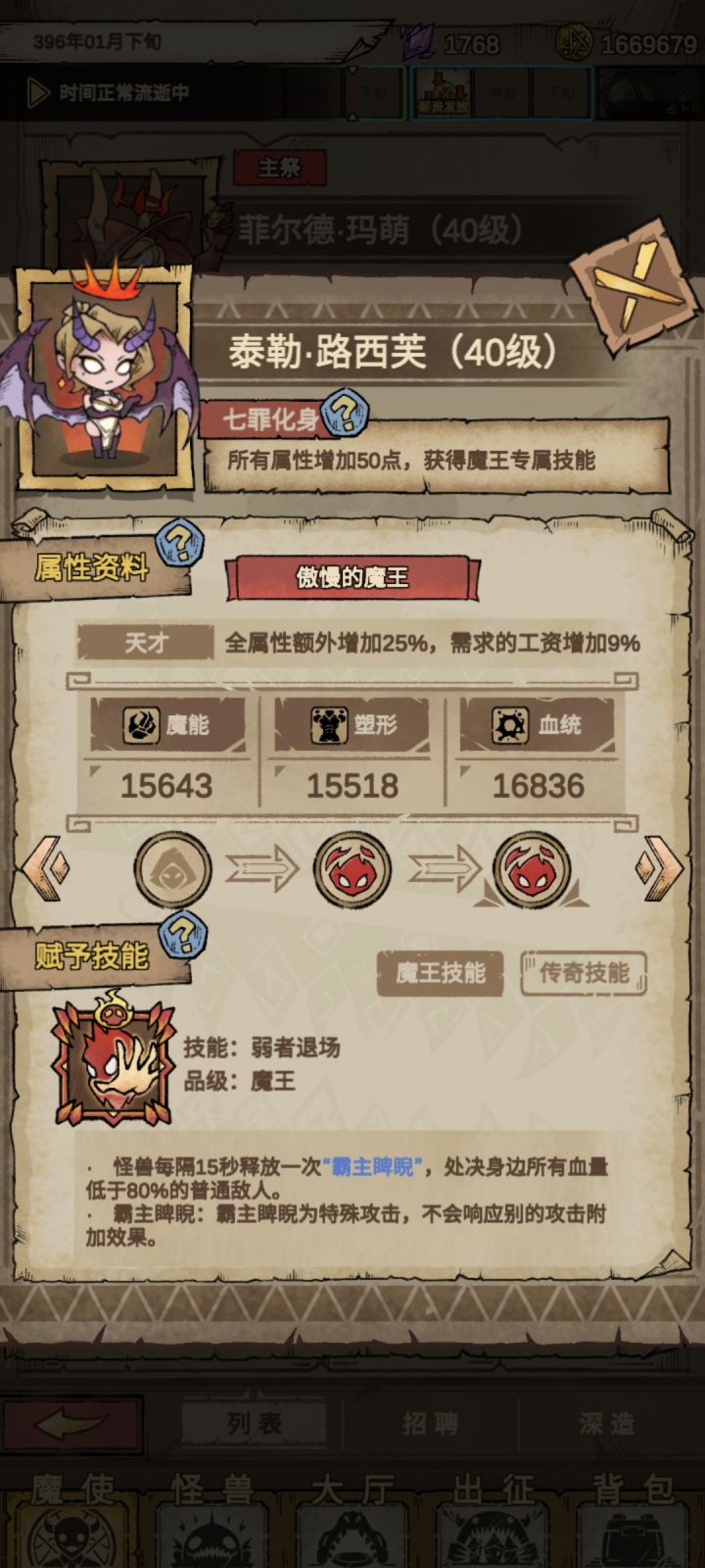希望出个道具,把转化为魔王的角色还原回去,现在有的魔王太拉了,但以前不知道,属性养的最高,招怪还老出这个魔王的技能,难受得不行