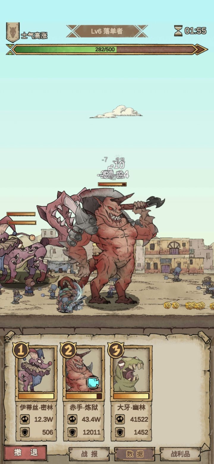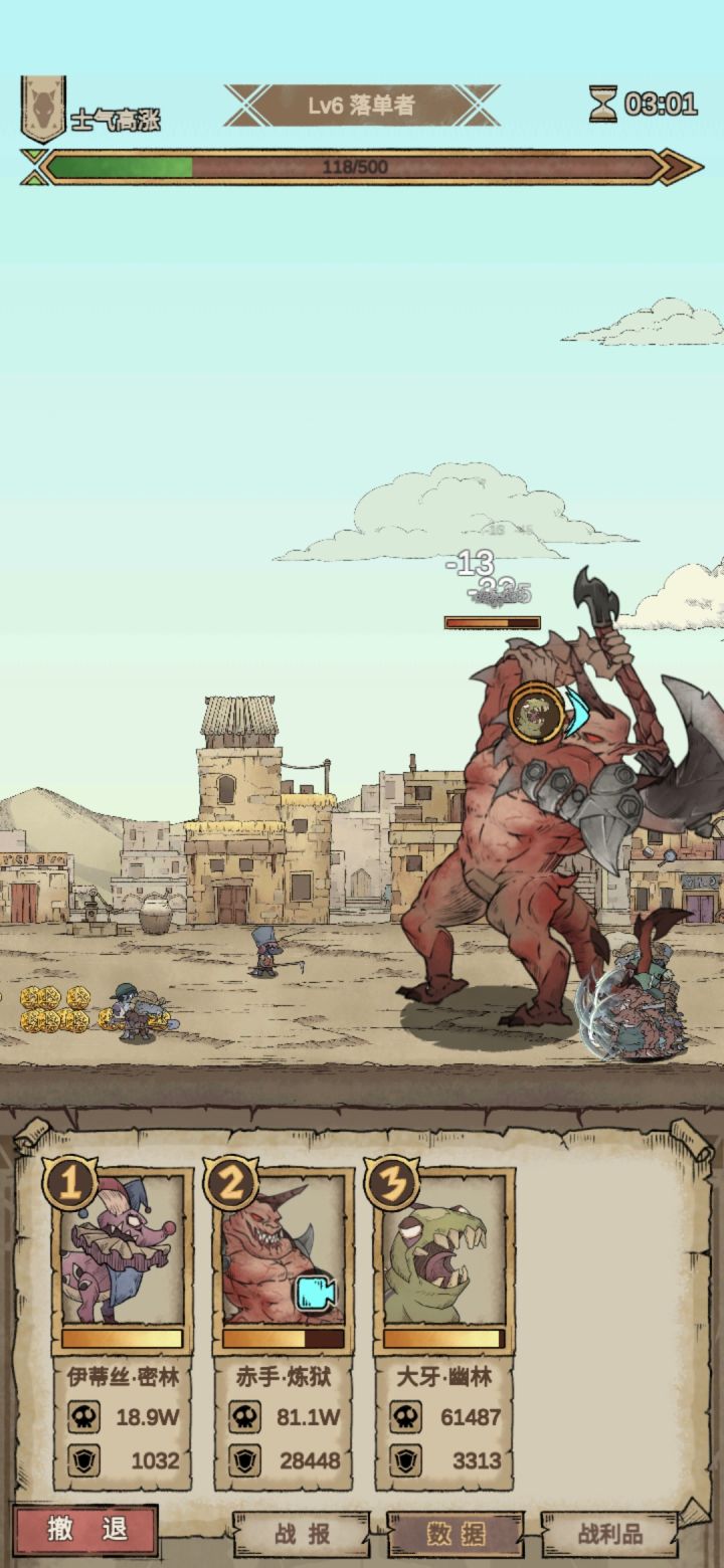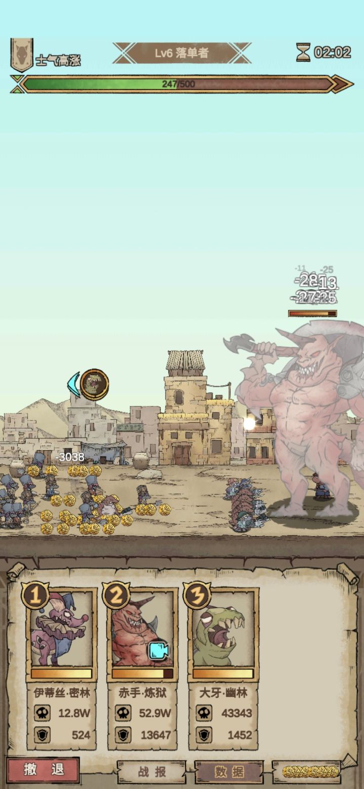 还有就是这个战斗画面,跟奥特曼打小怪兽一样,但是为什么不能加个速,或者你来个跳过也行,打城还好,可以看进度。纯打小人的这个看多了真的很无趣。