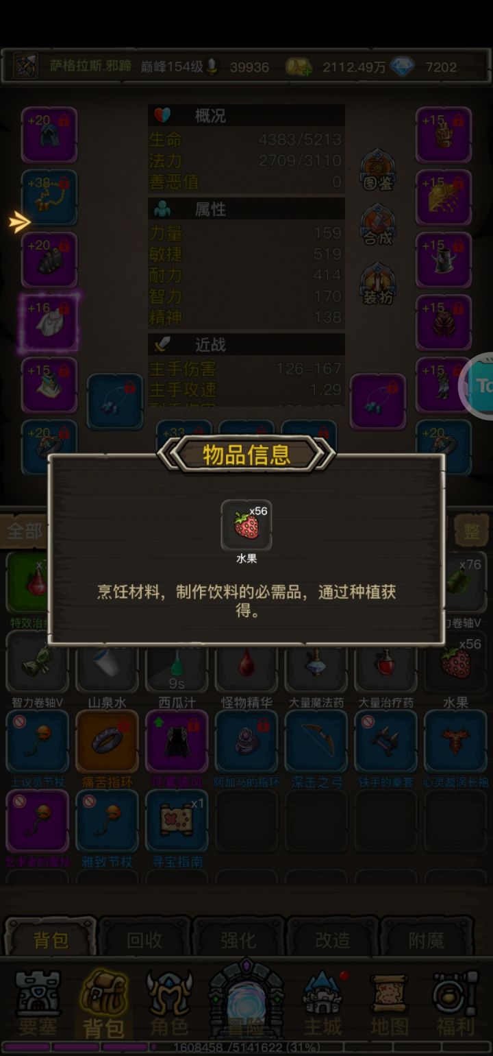 水果出现在背包里,丢不了,也用不掉。