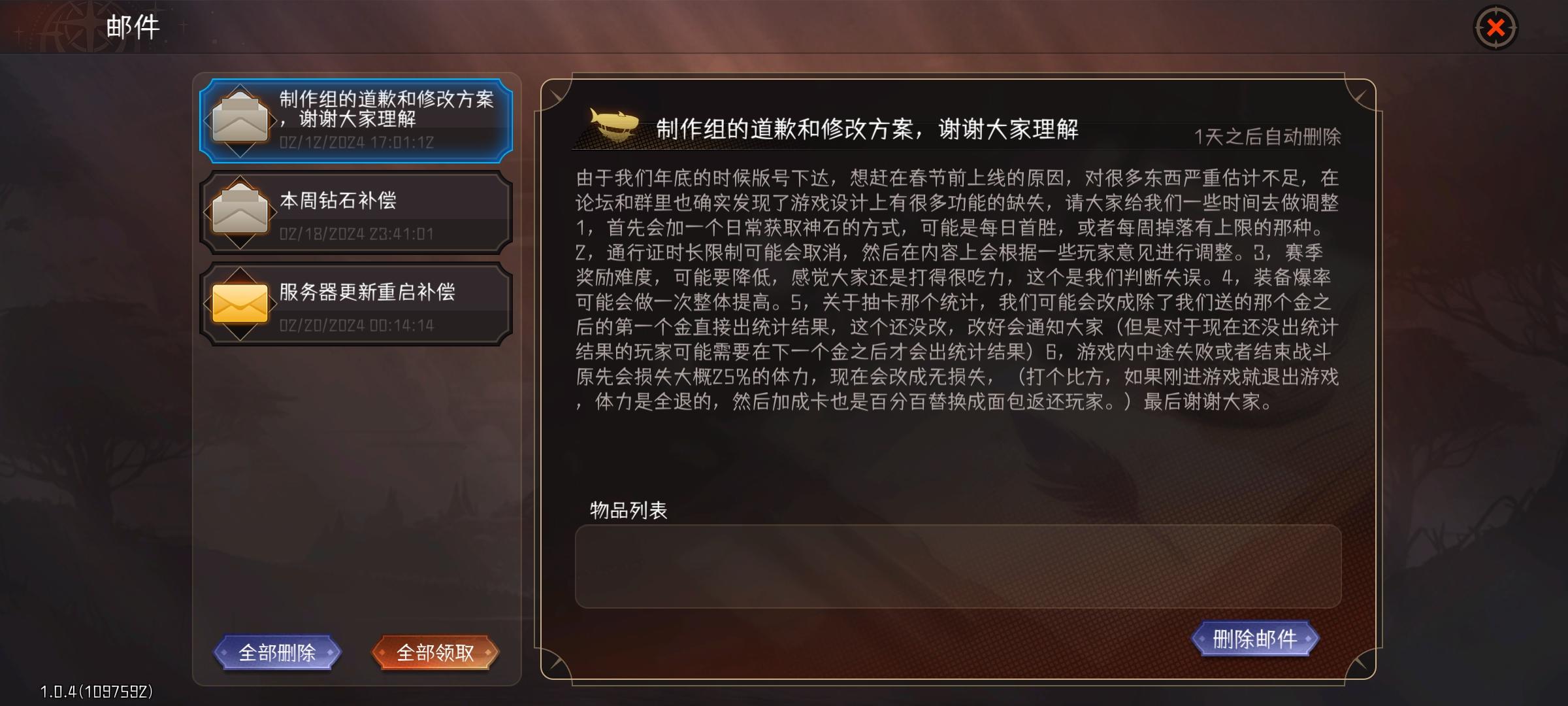 我这上一个这个邮件还在,显示一天后删除,下面一个有钻石和面包的邮件没有领就消失了,什么情况啊,既没有过12点也没有过一天.