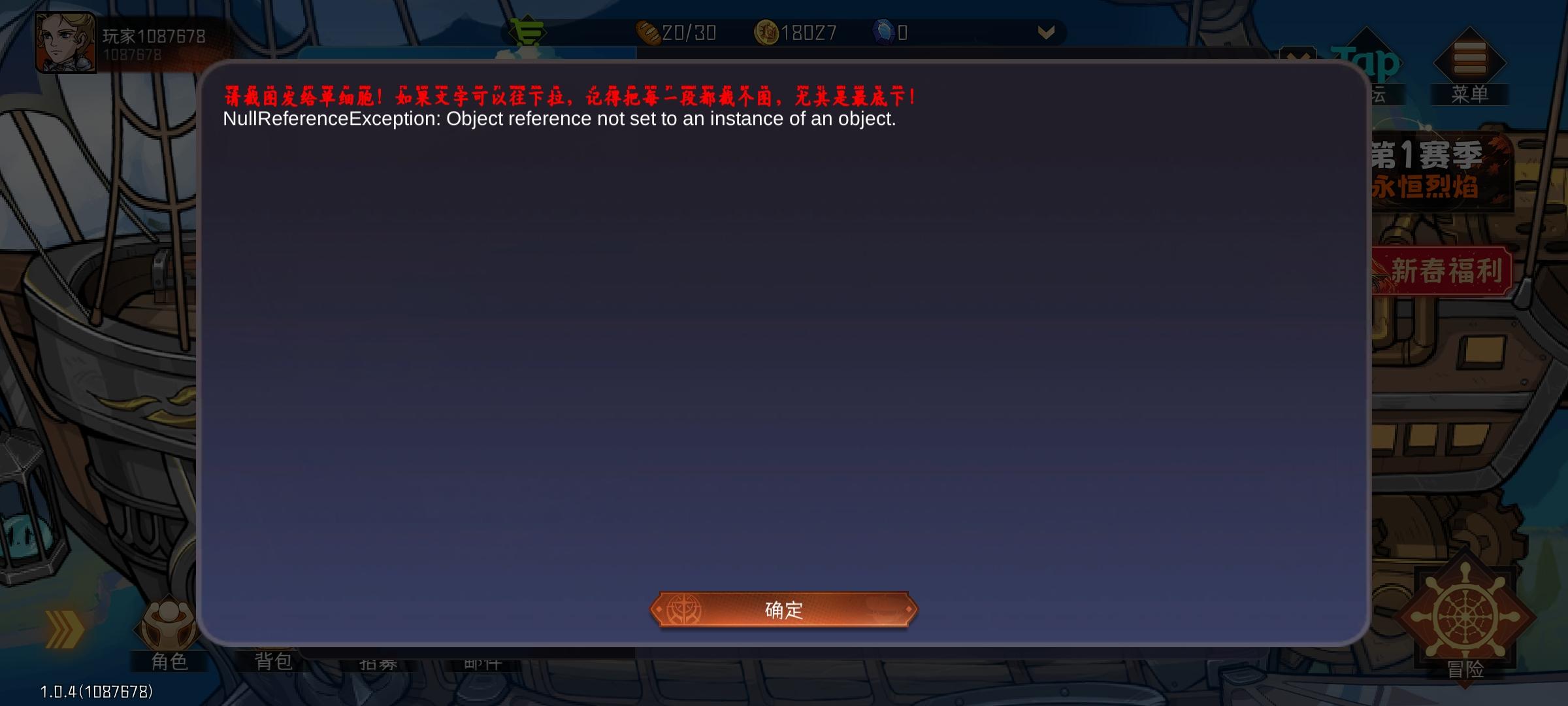 游戏结束开完宝箱,点了下装备,没点确定,就弹出这个,然后回到了主界面。
