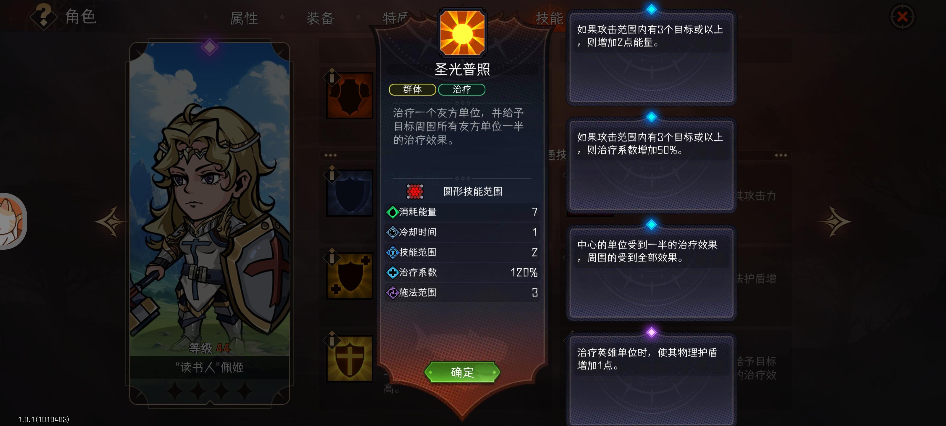 我不知道是遗物还是什么,有个buff,就是你可以重复使用技能但是能量会提升,因为我得了个金色的遗物满能量开自动这个角色就一直再给自己使用圣光普照,就算血满了也还是使用直到没能量,不知道这算不算bug