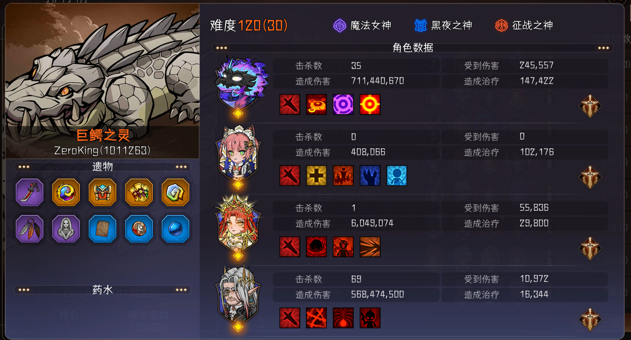魔转玩腻了怎么办?BOSS一回合秒不掉怎么办??不小心歪了鱼骑怎么办(并非不小心)??? 有的,兄弟有的,通通都能解决,请听我娓娓道来~阵容:杜鹃纯粹大眼+鱼骑+帝牧+钱牧杜鹃速度最慢,钱牧次之,速度越快越好,151上最好。我个人除了杜鹃其他三个能多高有多高,鱼骑甚至可以带速度项链搞到300以上或者360抢劫药水姐被教育了天神选择:征战之身+霜雪之狼+风暴之神大眼作为攻高