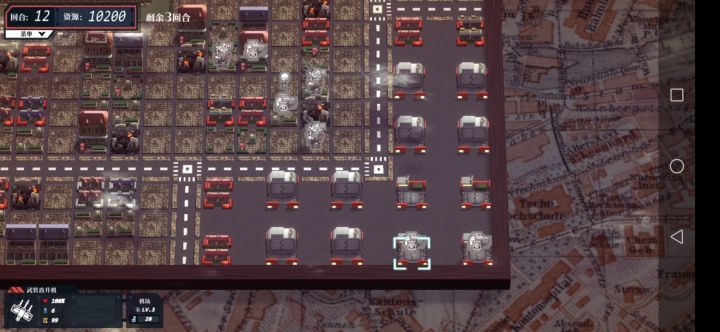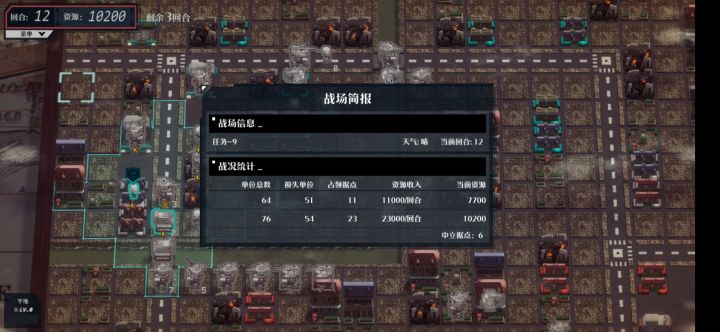 游戏挺不错的,感觉发展空间还是挺大的,比如皮肤啦,或者更进一步出个和即时战略游戏“机械化战争(不记得具体名字了,关键词:机器人,挖坑,碎片组件回收)”类似的兵种组件系统,允许自定义兵种,不过它那个其实就是选择上半部分和下半部分。连“教学”5~6想无损都有点费神,以后有成就系统的话可以考虑下这方面。左上角点击差信息有点费劲,可以把“作战目标”改成按住“回合”显示,“作战简报”则是按住“资源”。战