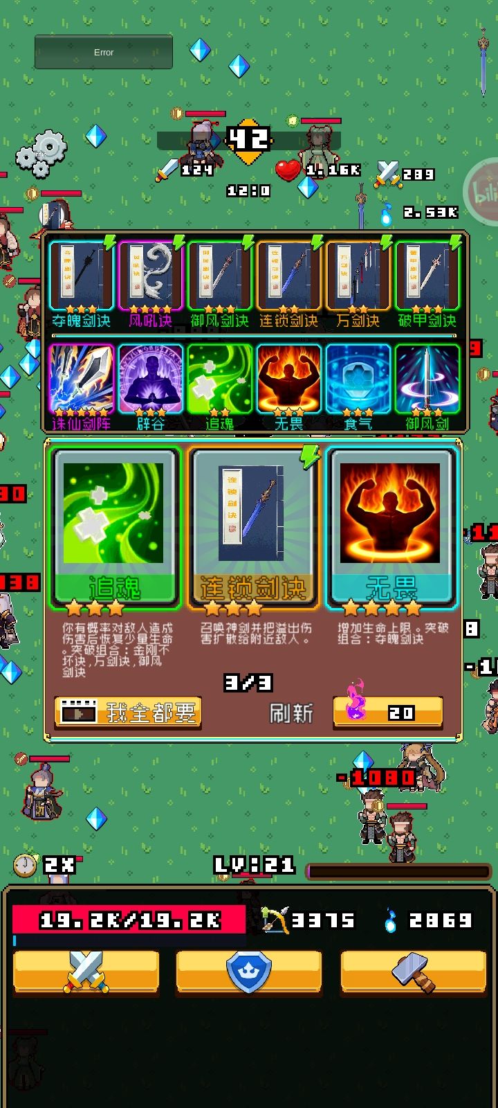 天地➕诛仙=枯燥,还有BOSS刚出来正好触发连锁剑诀秒掉的我懒得截了,后面三百多关的时候我作死跑到墙边被小怪刷脸上秒了。