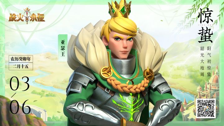 惊蛰已至,春意乍现。春风吹在脸上暖融融的,让人很想出去玩~海伦已经在准备赏花路线了,领主大人有春日出游计划吗?这次的节气专栏我们邀请到了永恒之王亚瑟王。隶属风元素阵营的他满头金发,头戴王冠,手持王者之剑。身为圆桌骑士团首领,亚瑟王高贵优雅,气度卓然。风元素的象征色“绿色”和春天是最般配的。花朵即将盛开,有一些重要的约定也将会兑现。期待和领主大人们正式见面的那天。欢迎各位领主大人加入TAP官方